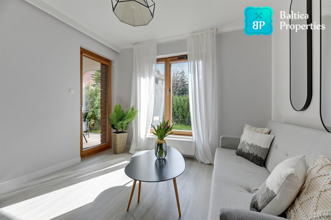 Mam przyjemność zaprezentować Państwu słoneczny, komfortowo wykończony oraz w pełni wyposażony apartament zlokalizowany w Jelitkowie przy ulicy Bursztynowa 21 w prestiżowej inwestycji Invest Komfort "BURSZTYNOWA".Apartament posiada powierzchnię 42,70m2 , mieści się na parterze budynku i składa z następujących pomieszczeń :