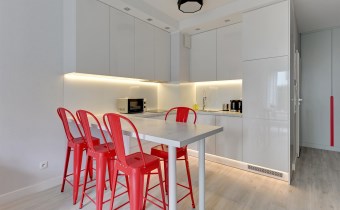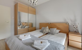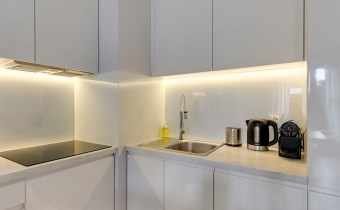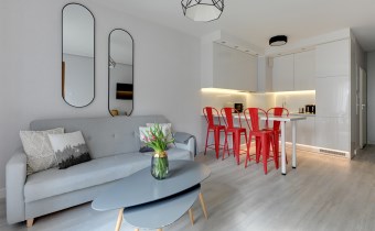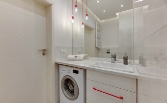 Cały apartament został wykończony ze smakiem z wysokiej jakości materiałów.