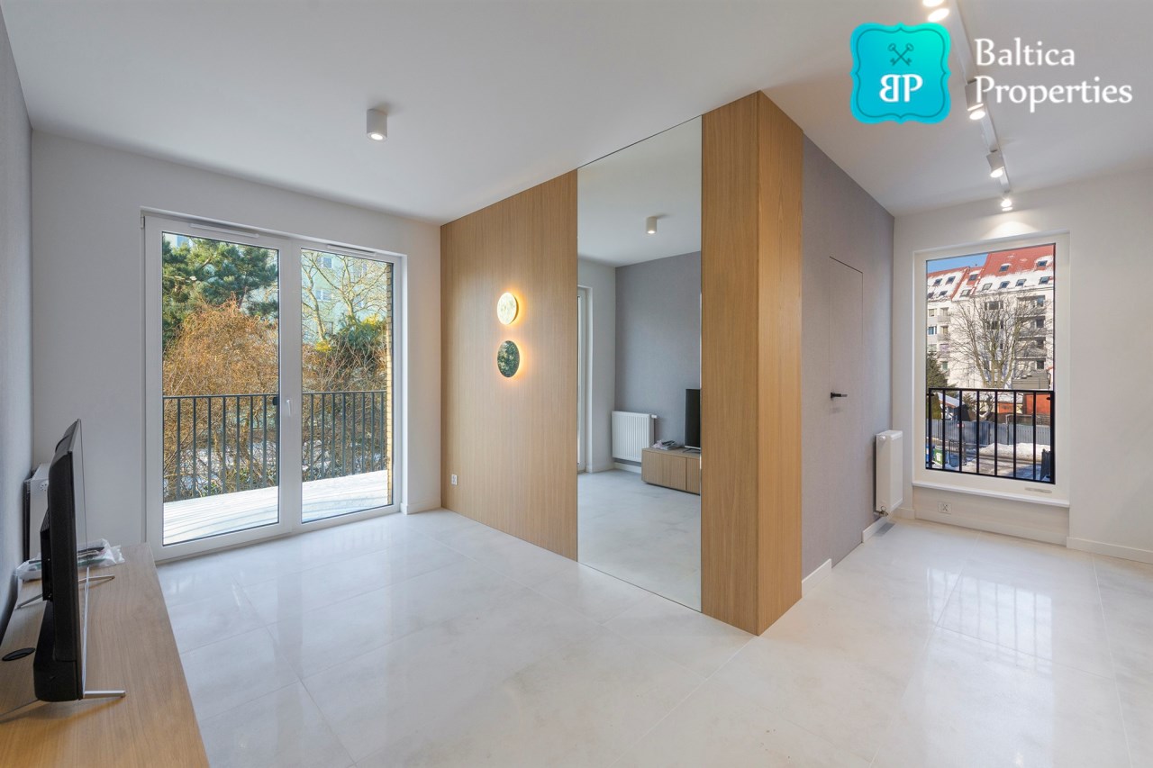 Mam przyjemność zaprezentować Państwu: zupełnie NOWY, komfortowo wykończony oraz w pełni wyposażony apartament zlokalizowany w Gdańsku Brzeźnie przy ulicy Korzeniowskiego 6 w nowo powstałej inwestycji "VILLA Brzeźno".