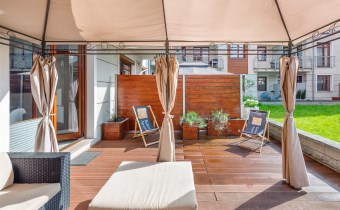 - przestronnego słonecznego tarasu o pow. ok 30m2 ( wyjście z salonu )