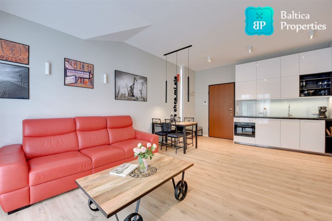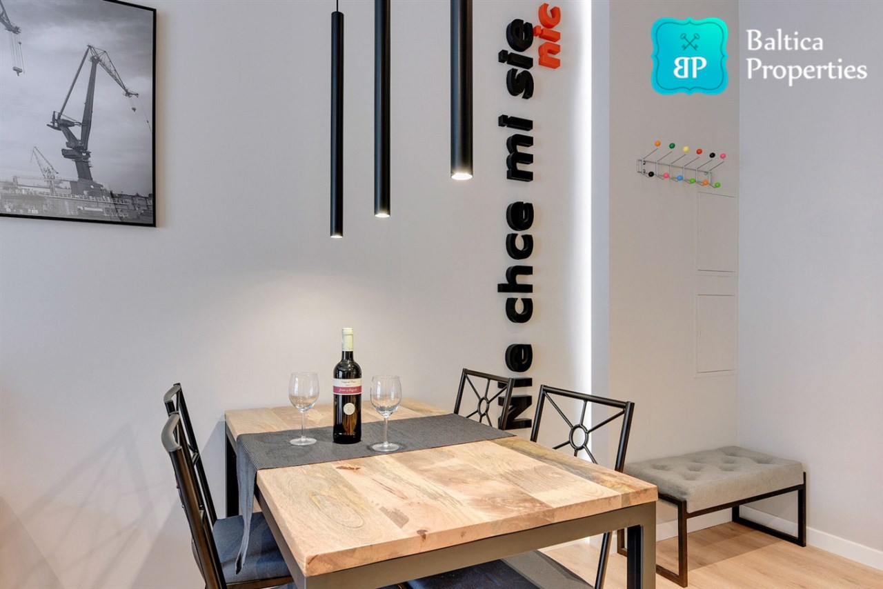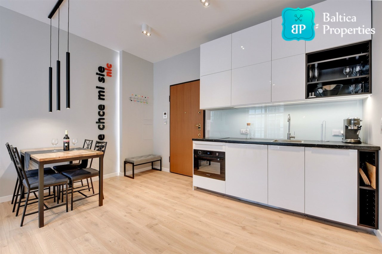 Apartament w pełni umeblowany o wysokim standardzie widocznym na zdjęciach.