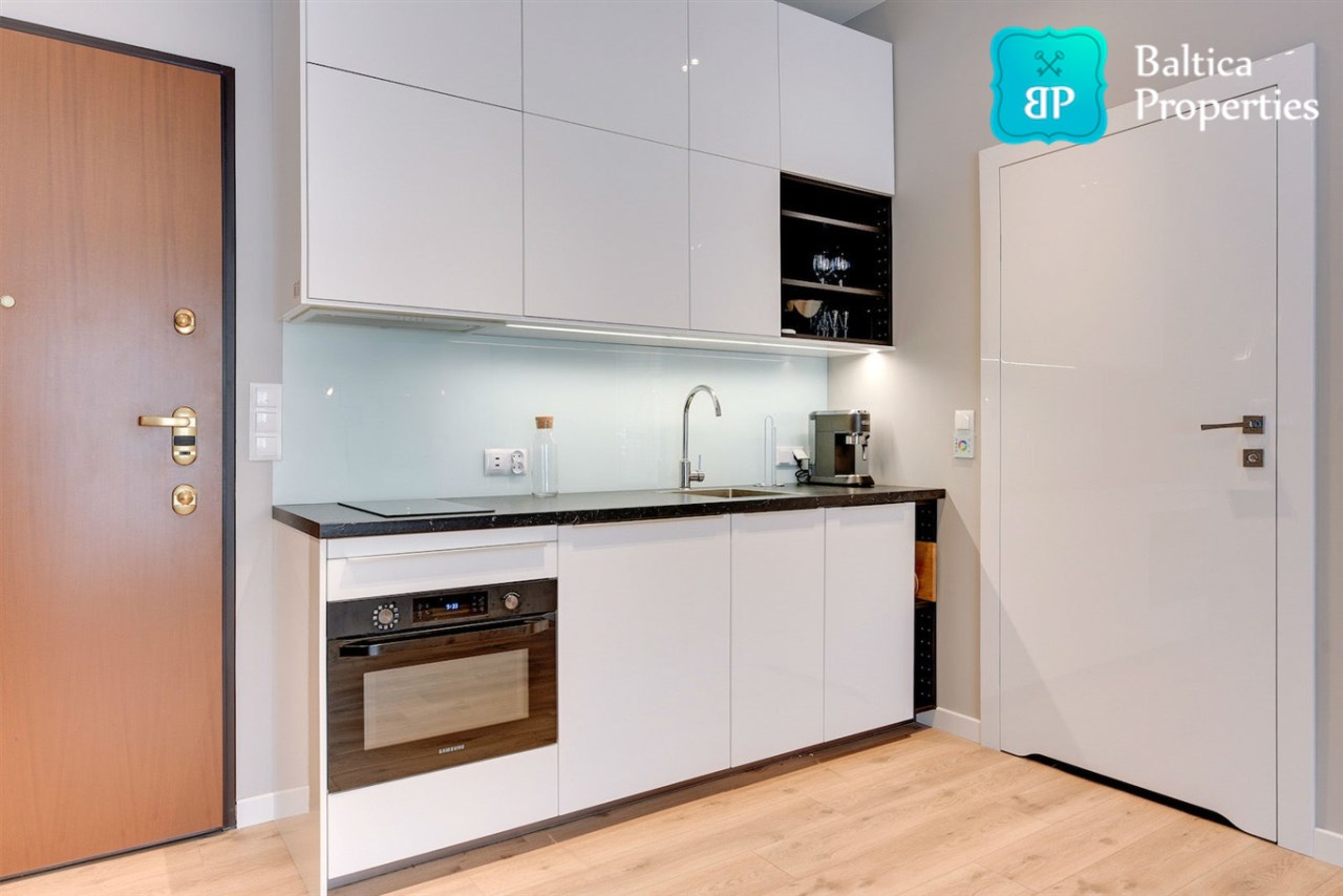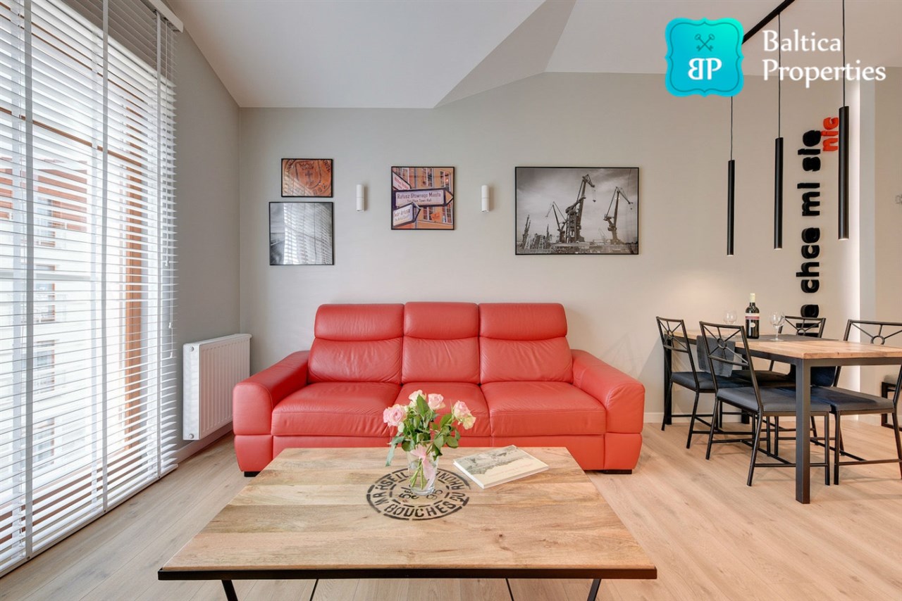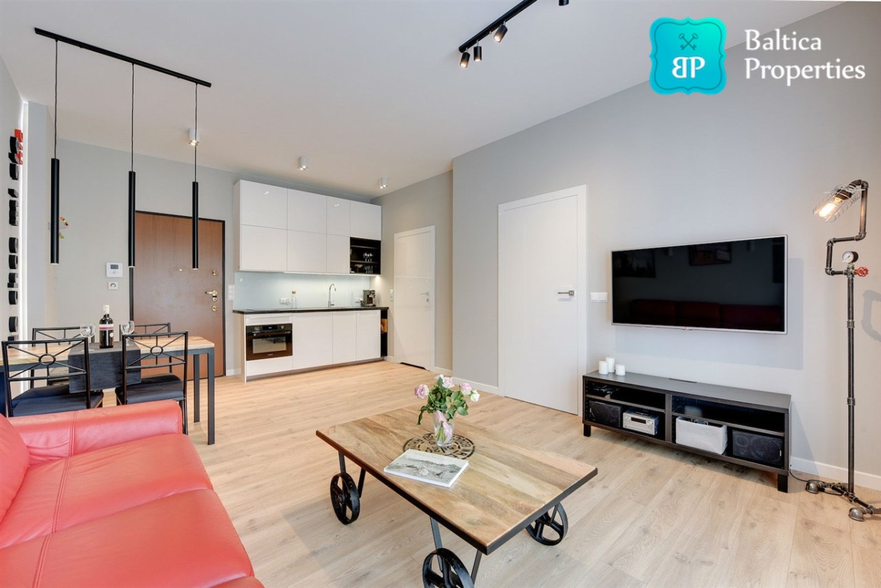 Apartament w pełni umeblowany o wysokim standardzie widocznym na zdjęciach.