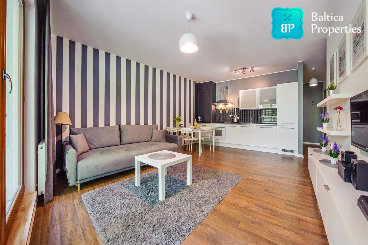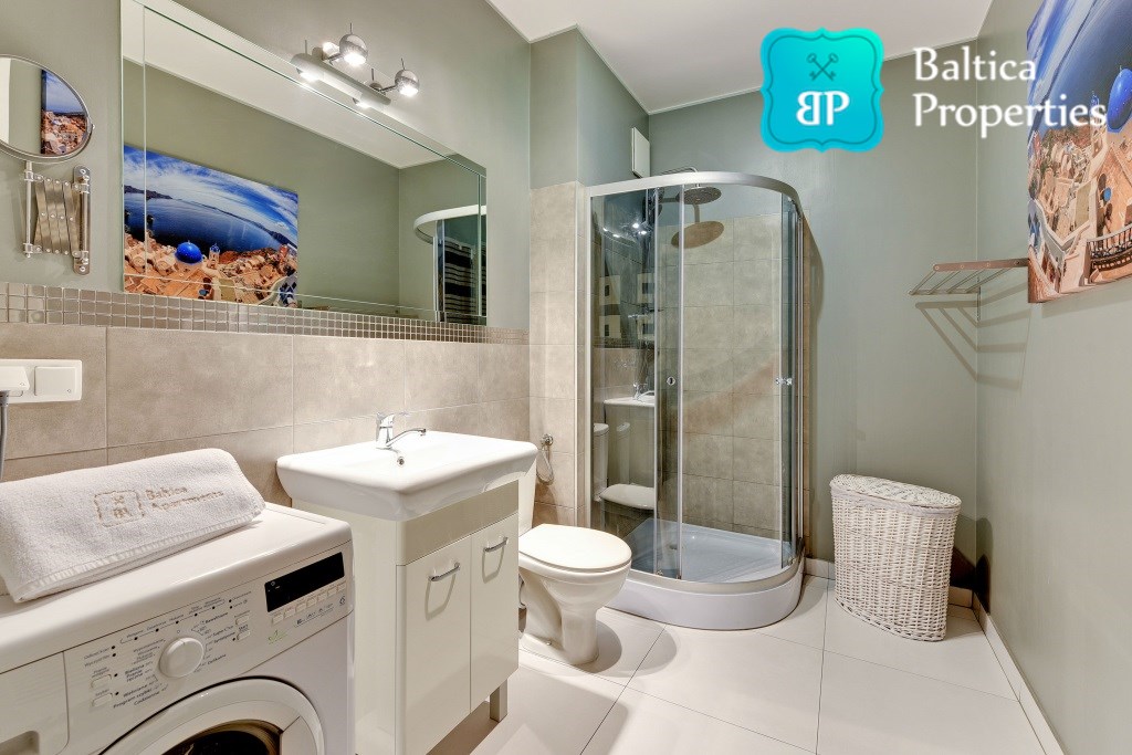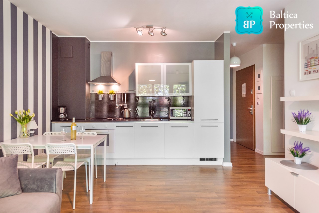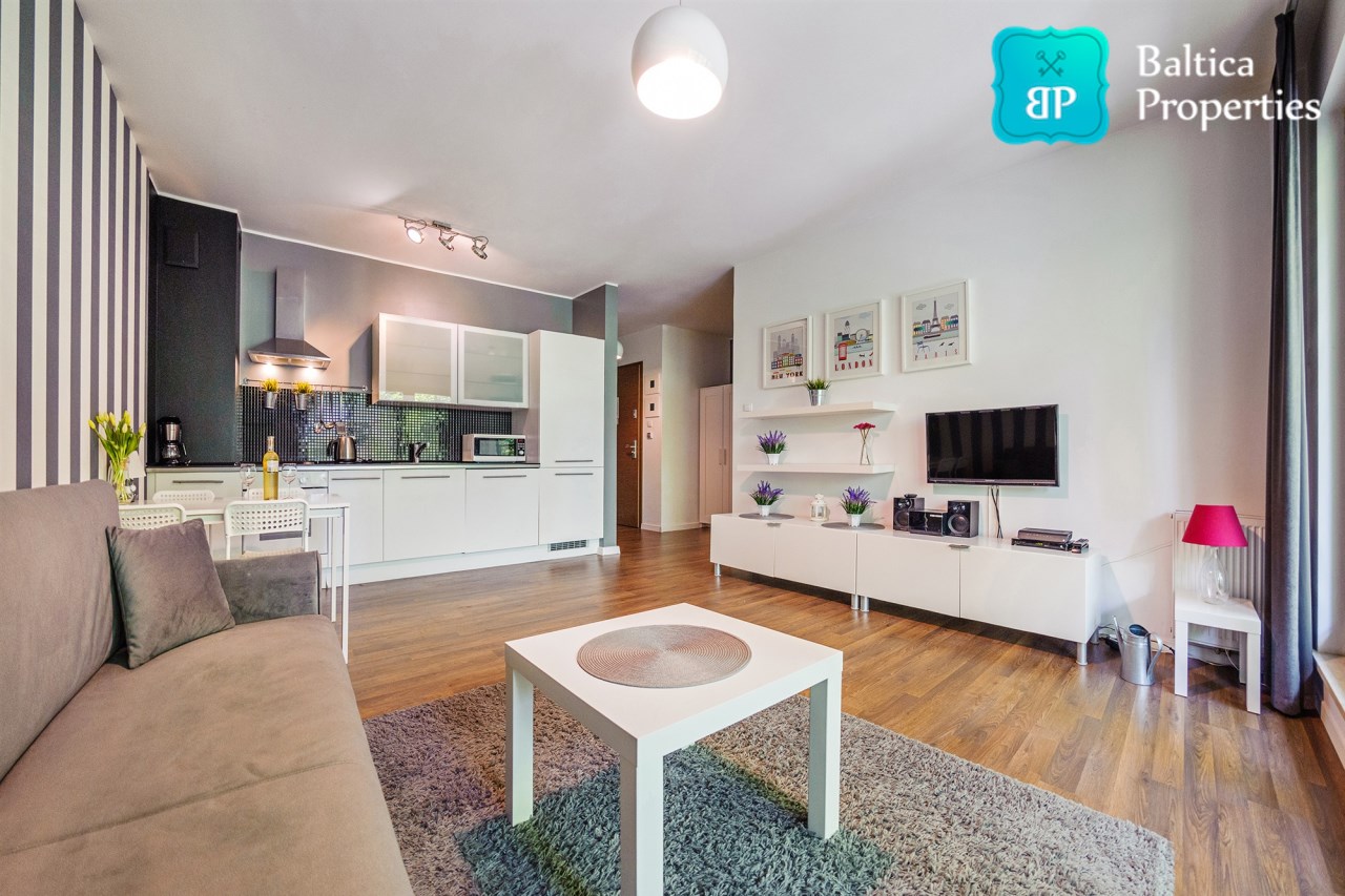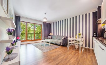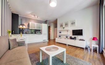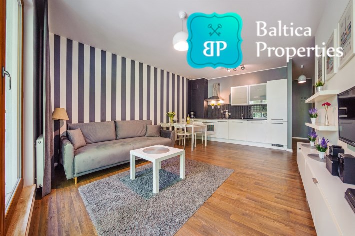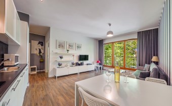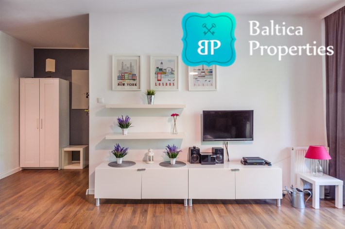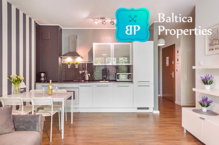 Apartament jest w pełni umeblowany o wysokim standardzie widocznym na zdjęciach.