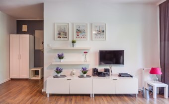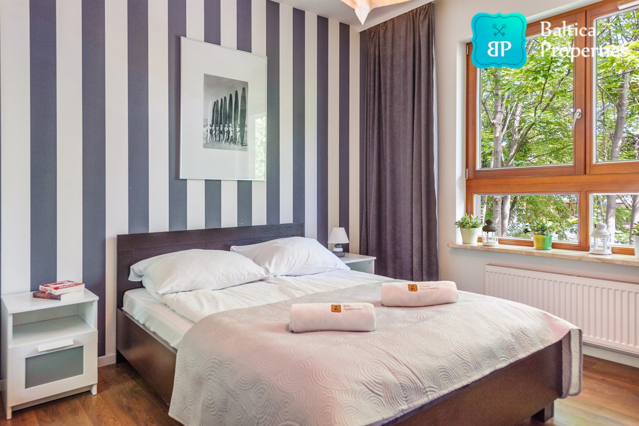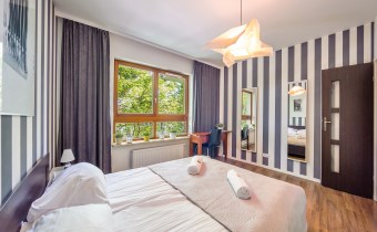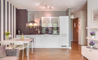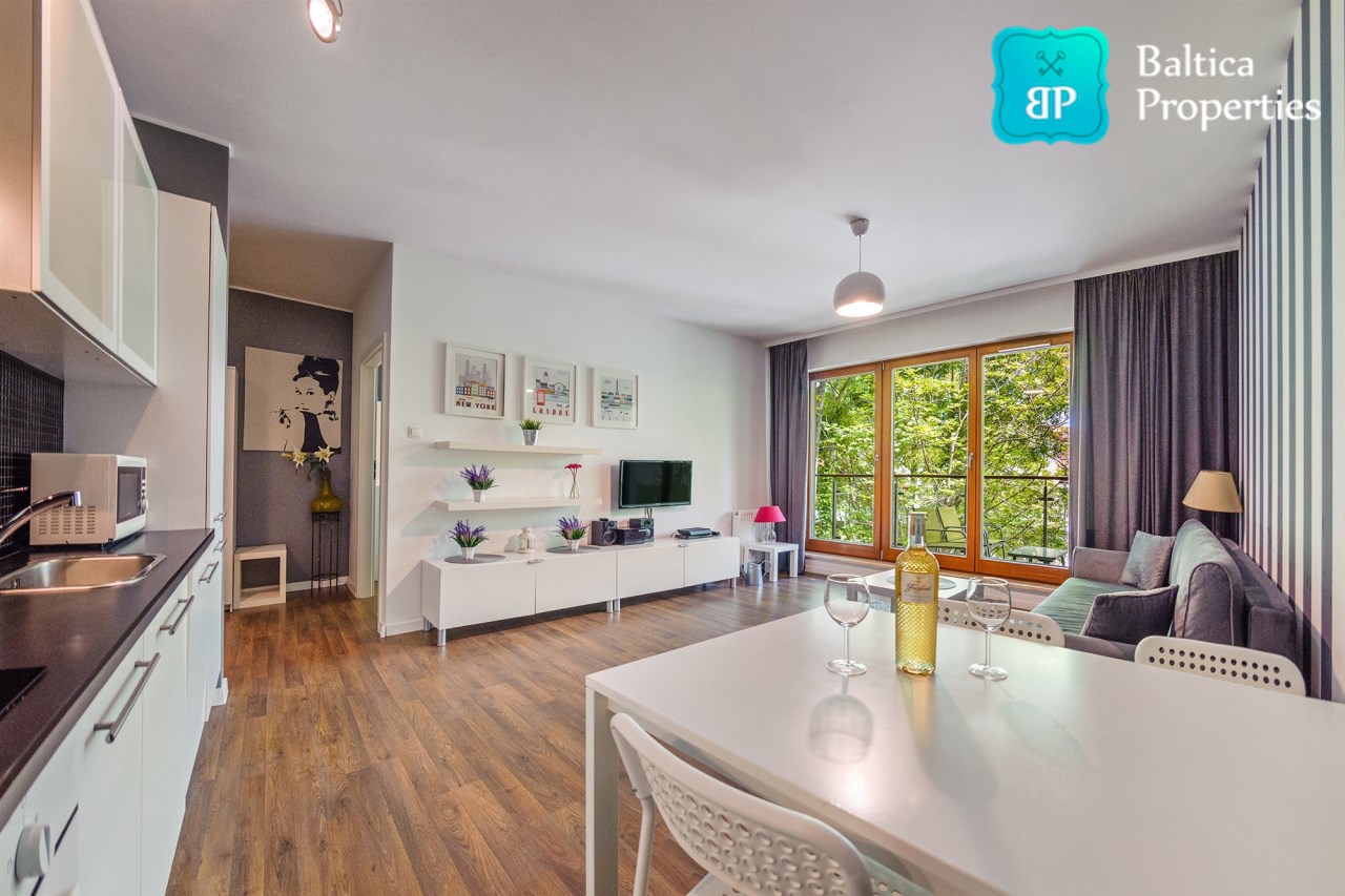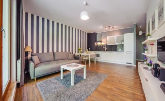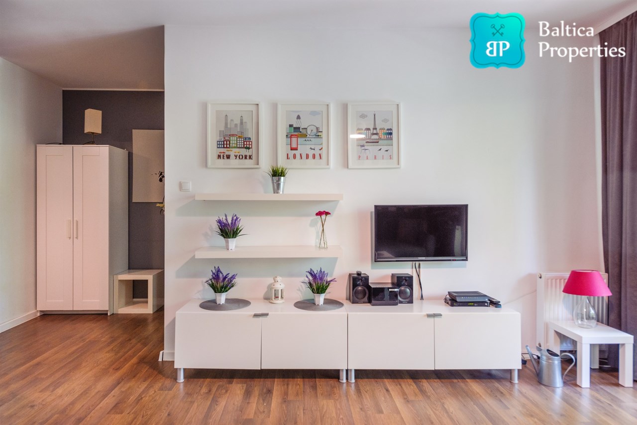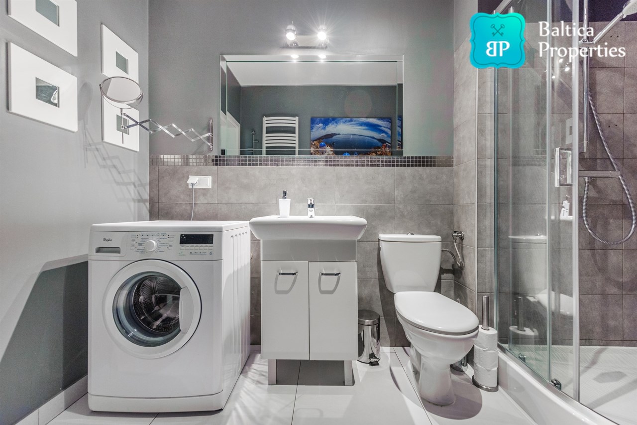 Apartament jest w pełni umeblowany o wysokim standardzie widocznym na zdjęciach.
