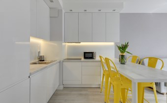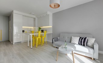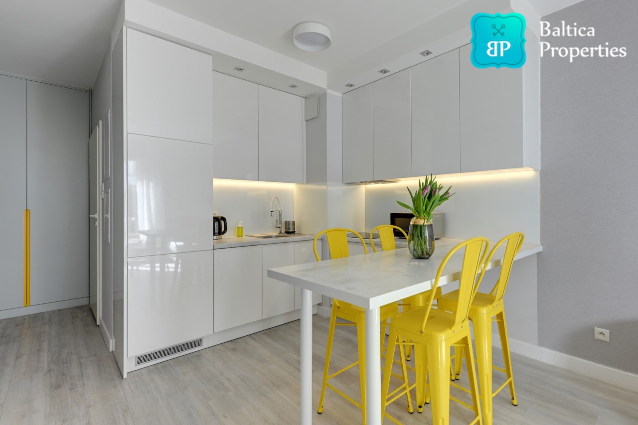 Apartament jest w pełni umeblowany o wysokim standardzie widocznym na zdjęciach.