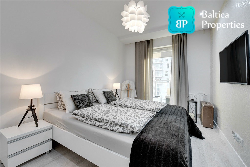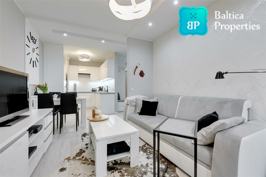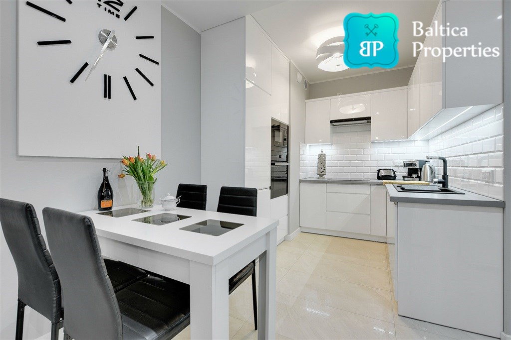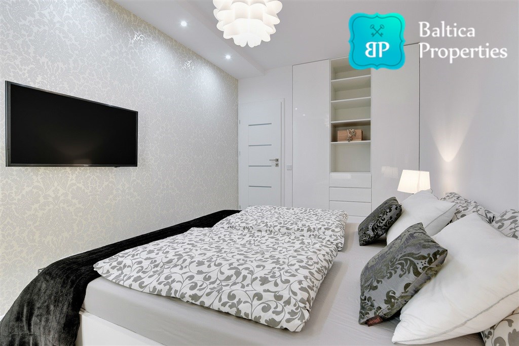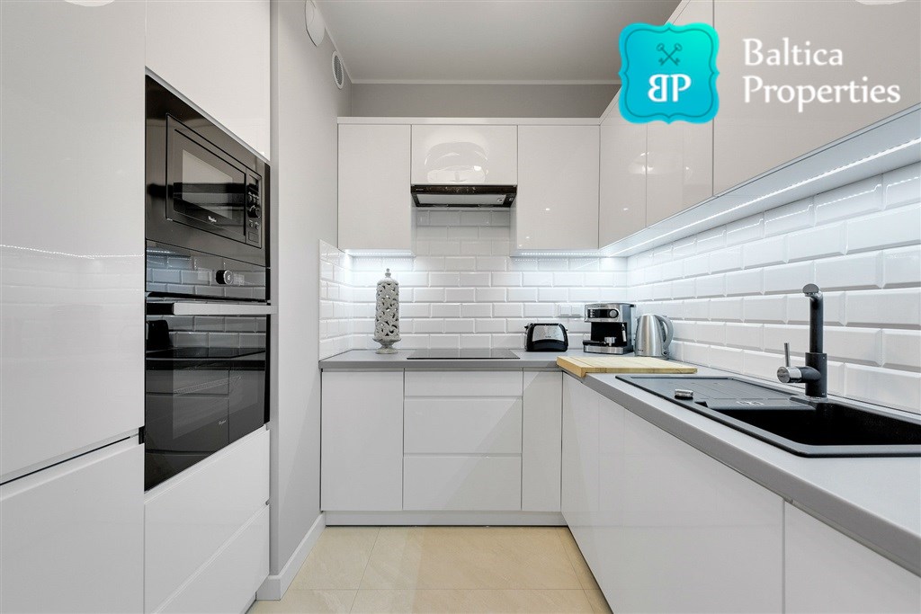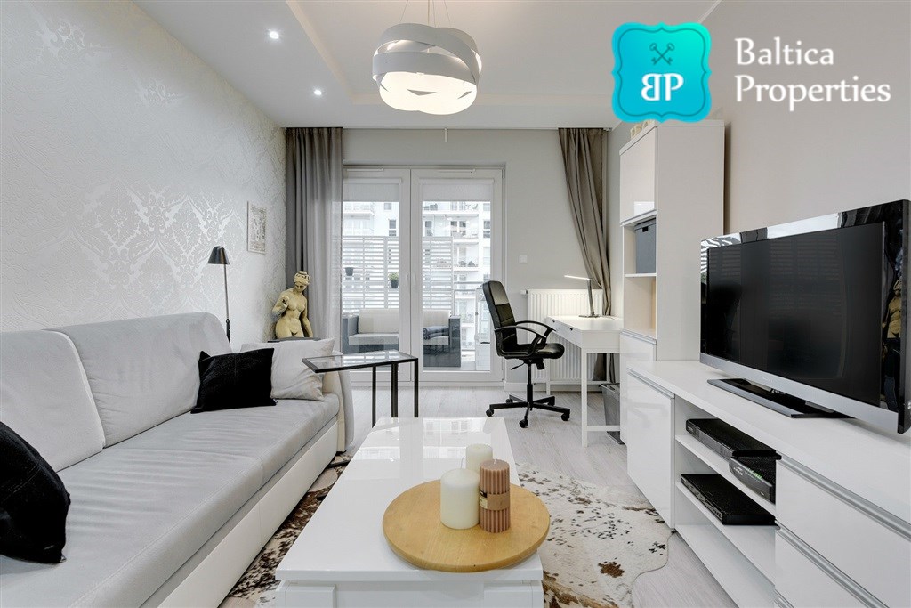 Apartament w pełni umeblowany o wysokim standardzie widocznym na zdjęciach.