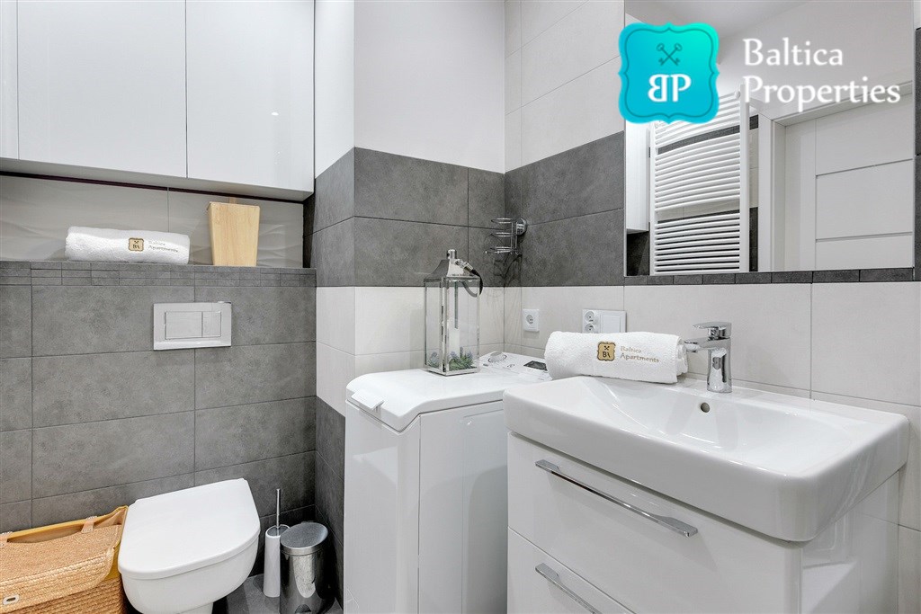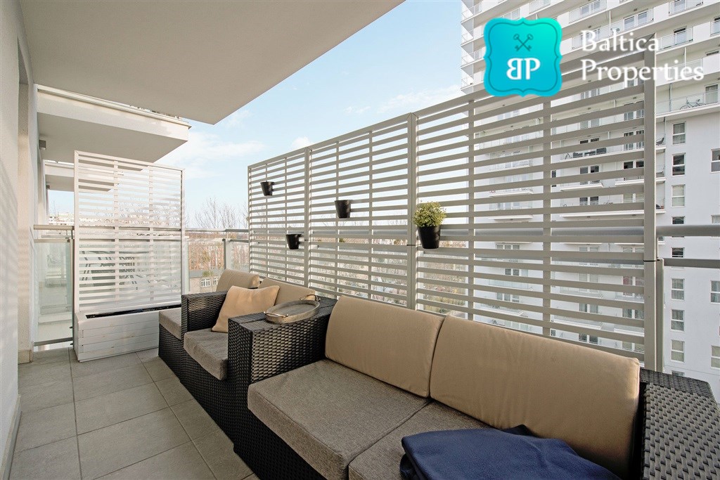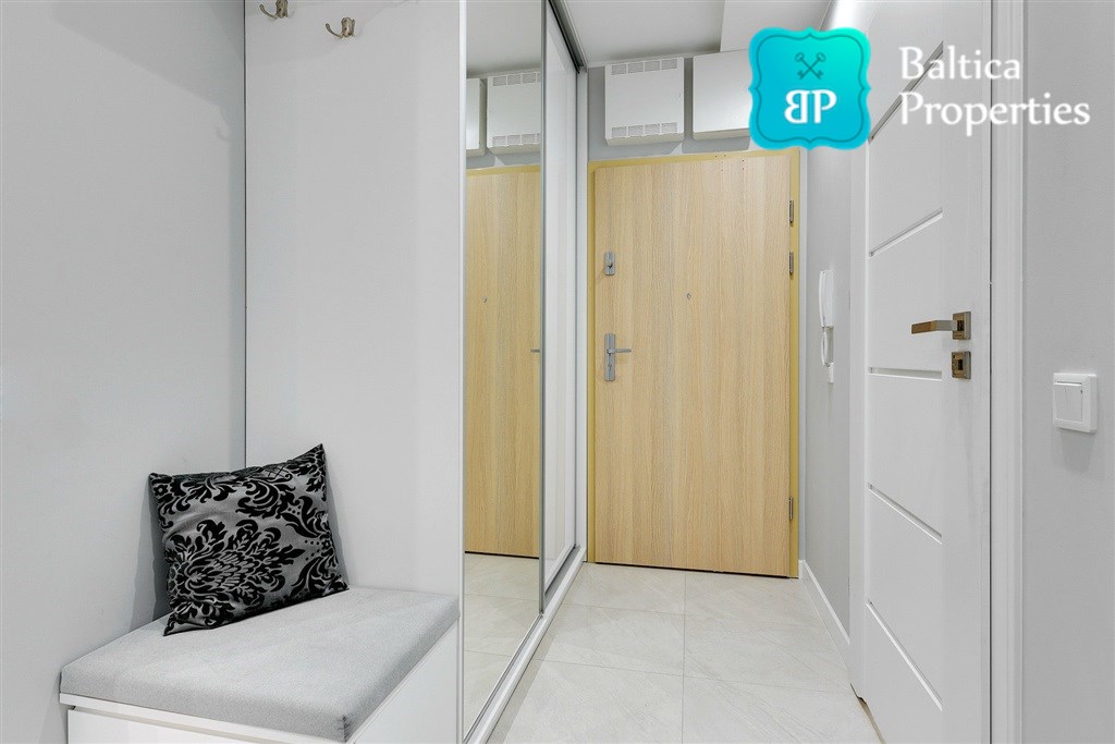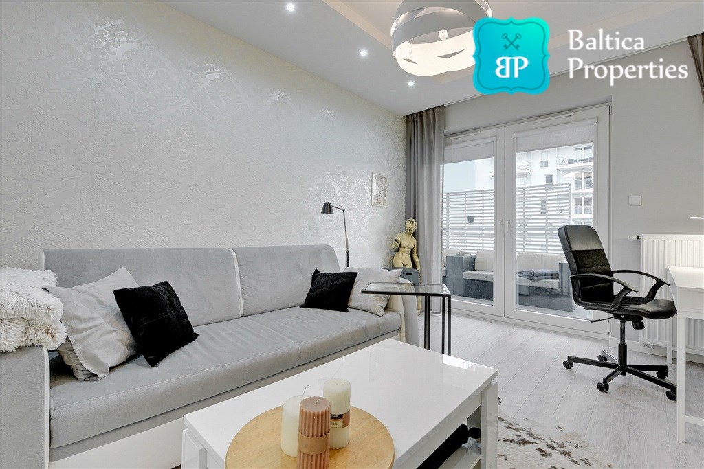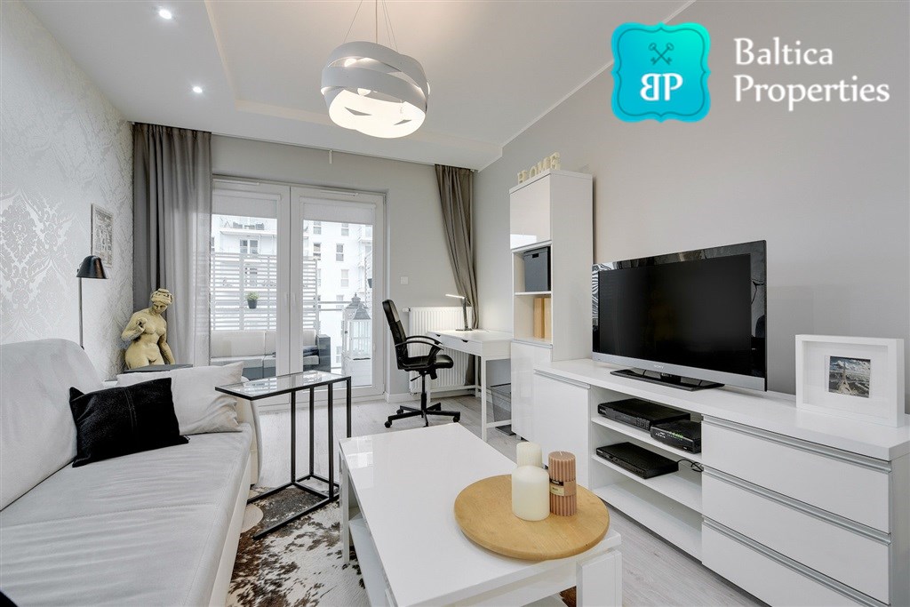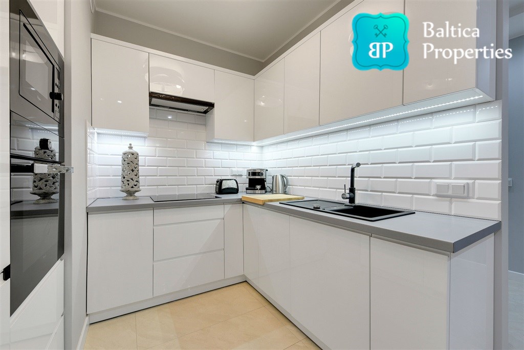Apartament w pełni umeblowany o wysokim standardzie widocznym na zdjęciach.