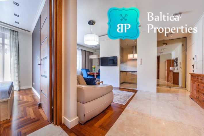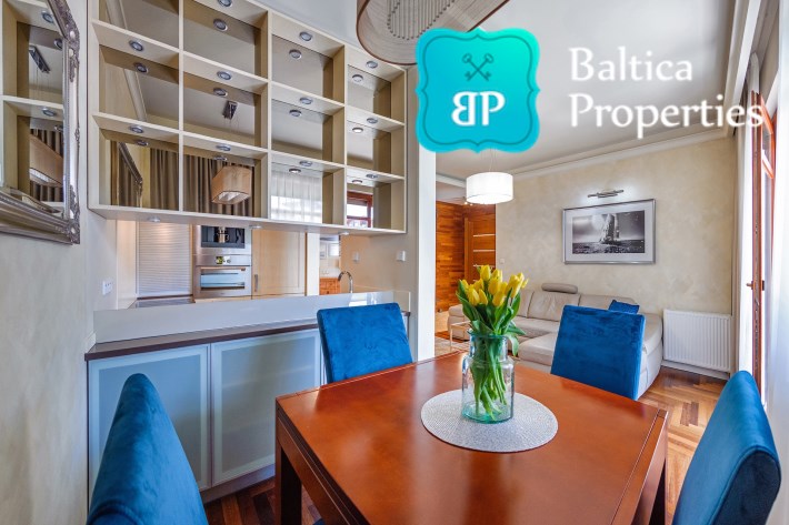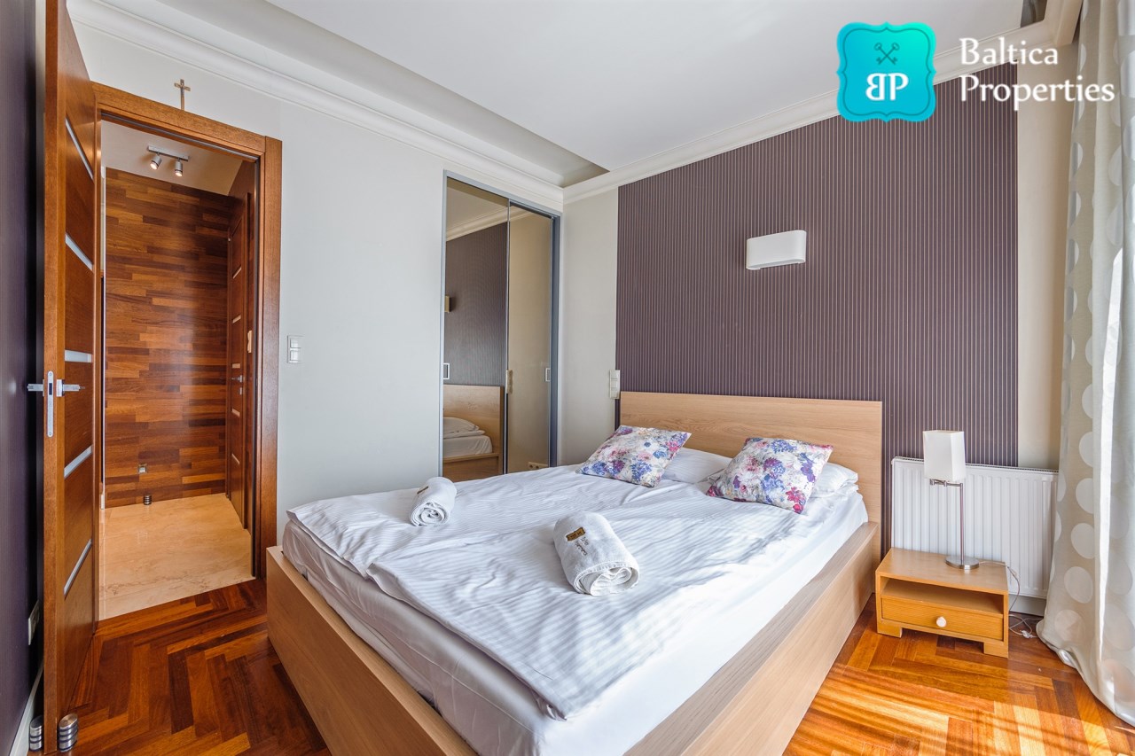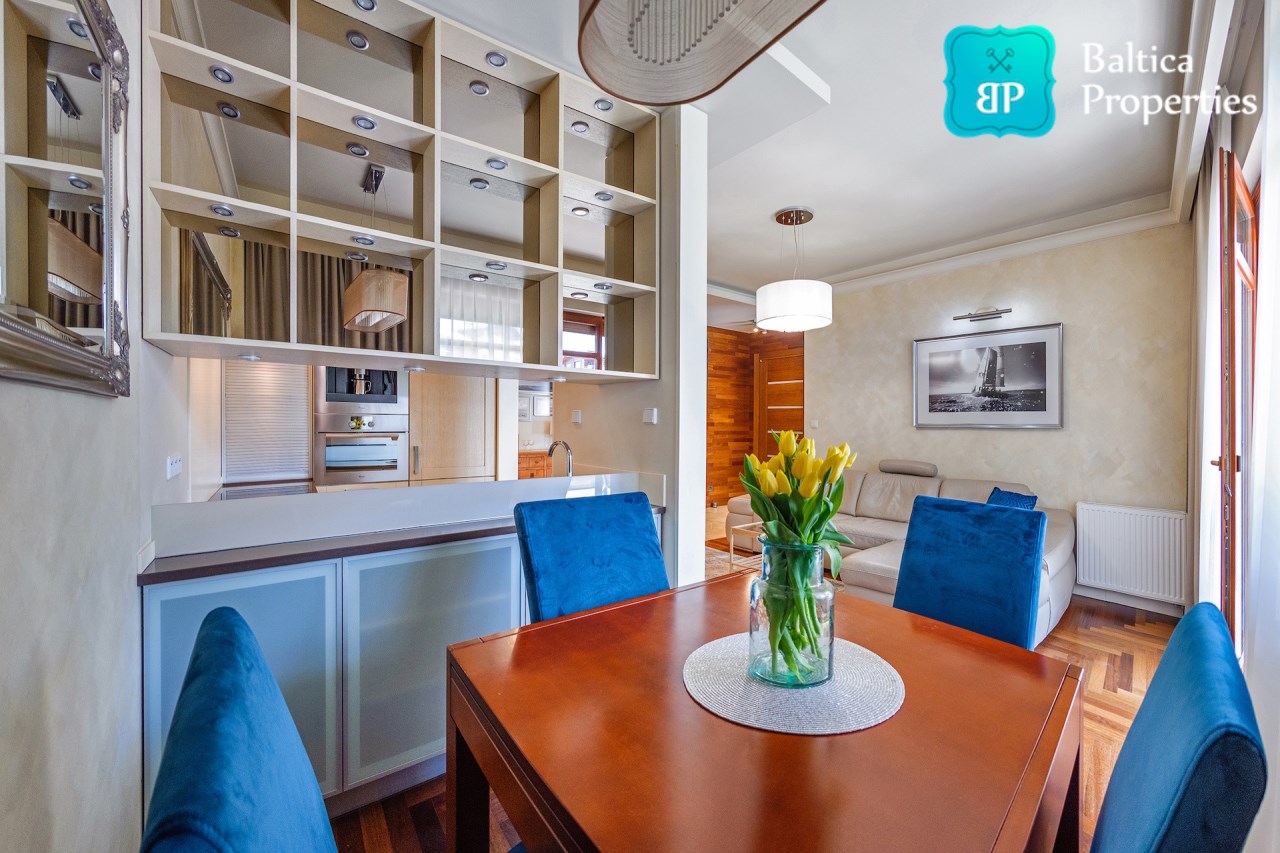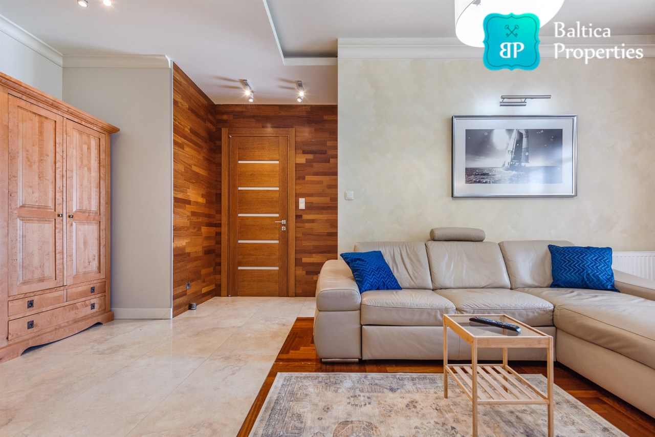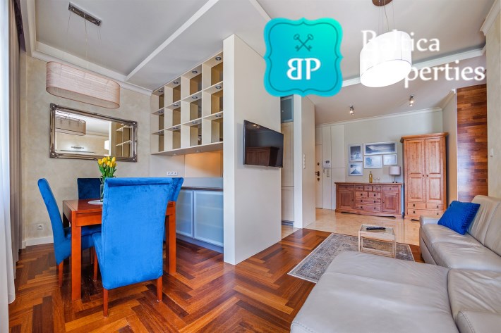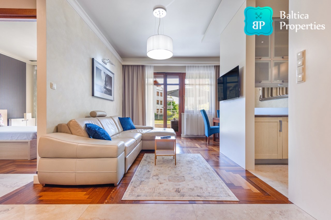 Na wynajem luksusowy dwupokojowy apartament "SUNSHINE&TERRACE" o powierzchni użytkowej 50m2 zlokalizowany w luksusowym kompleksie Neptun Park w odległości 100m od plaży w Jelitkowie tuż przy promenadzie.Apartament składa się z następujących pomieszczeń: