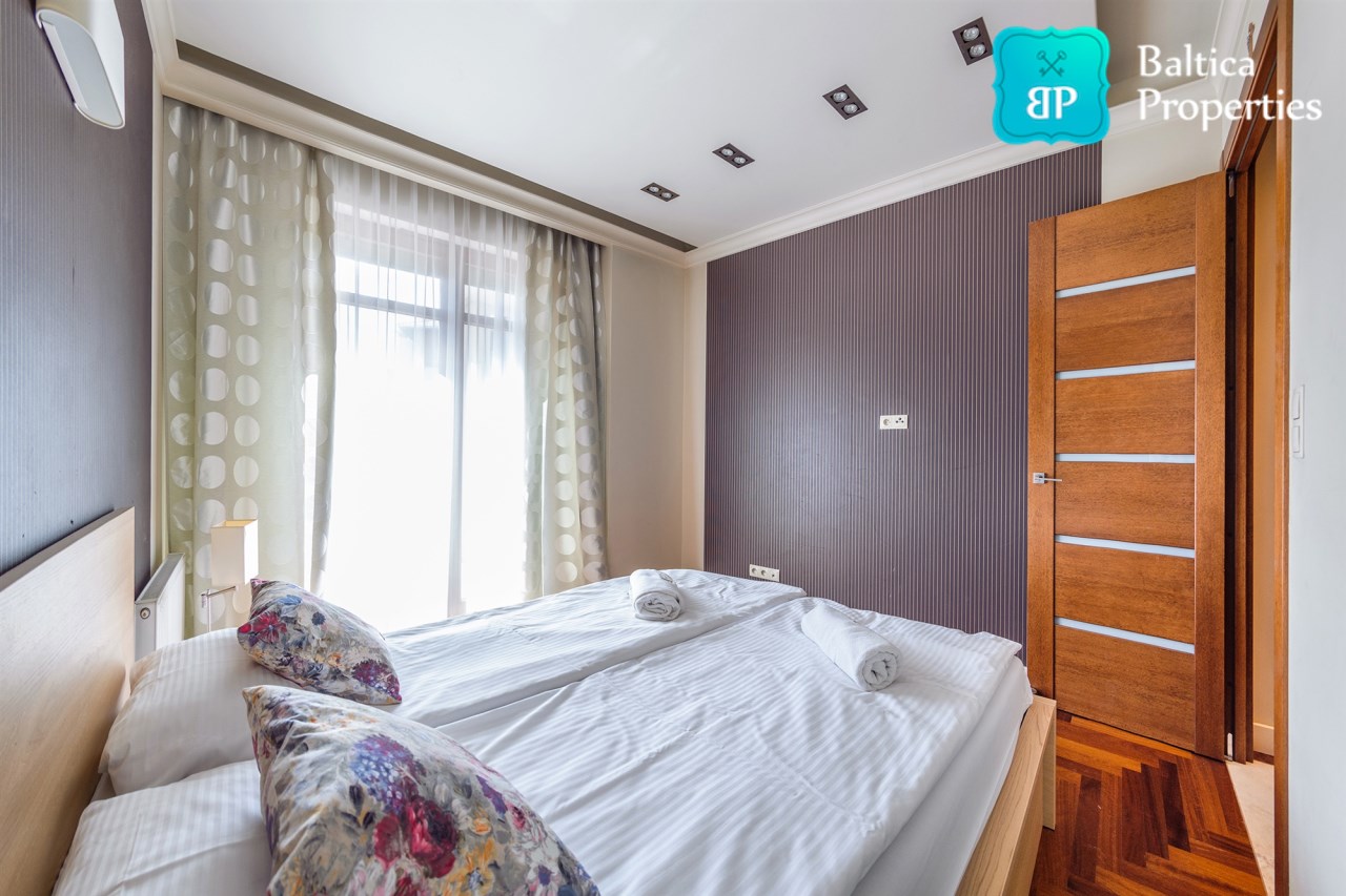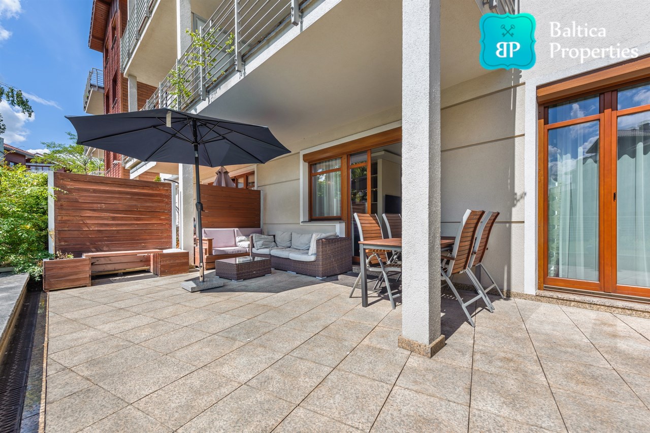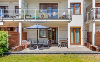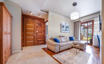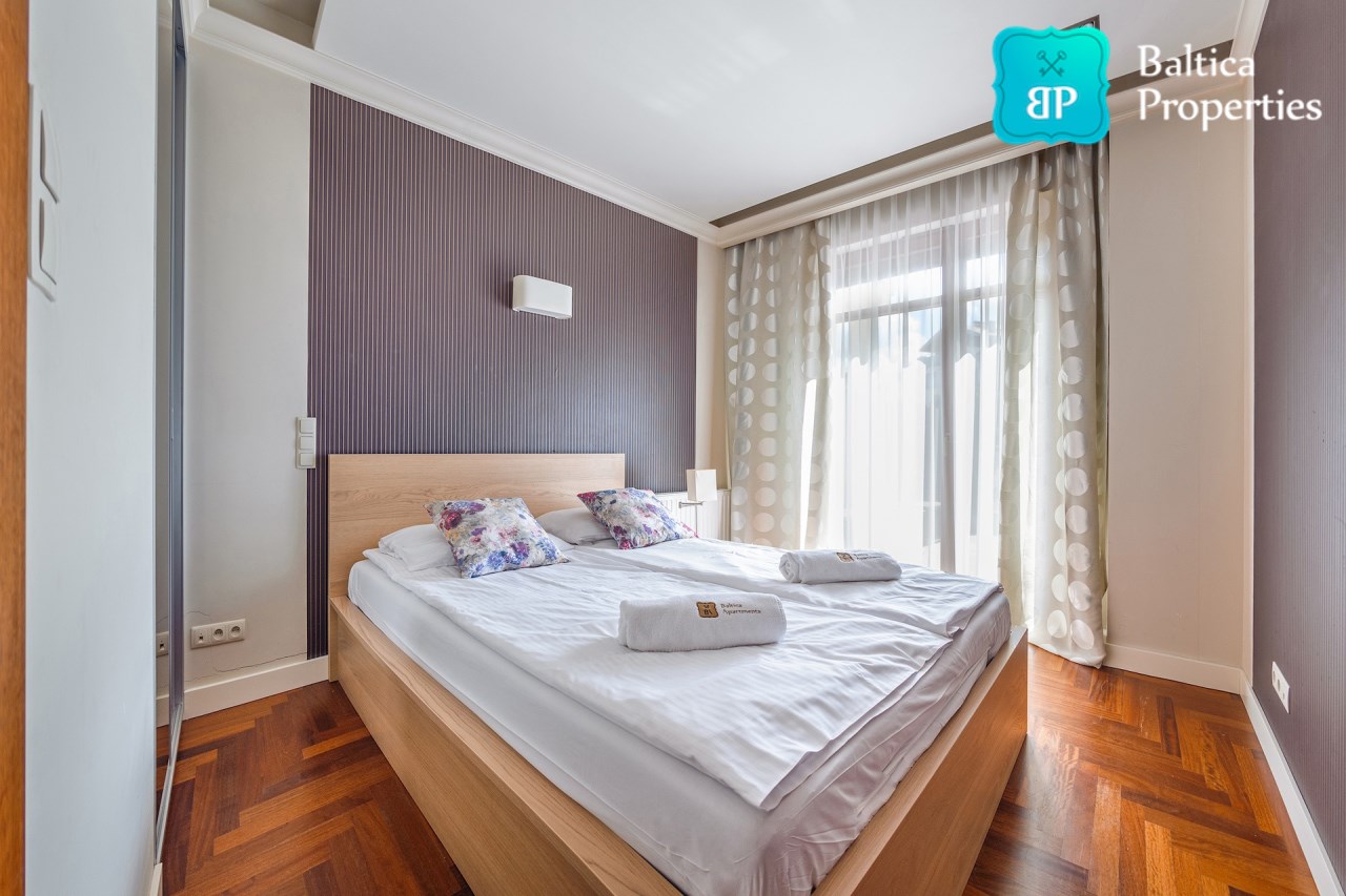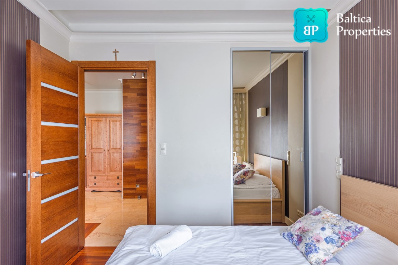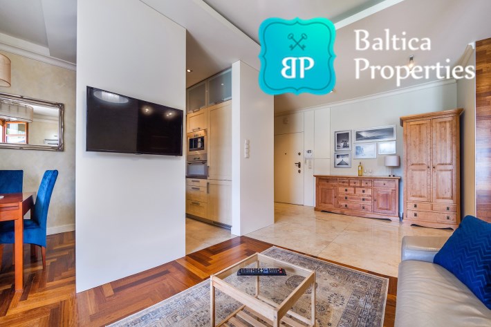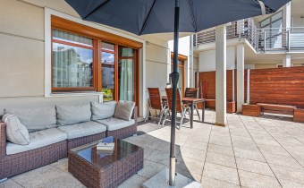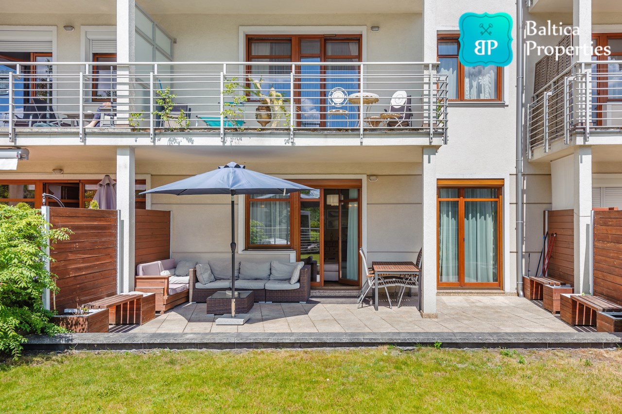 Na wynajem luksusowy dwupokojowy apartament "SUNSHINE&TERRACE" o powierzchni użytkowej 50m2 zlokalizowany w luksusowym kompleksie Neptun Park w odległości 100m od plaży w Jelitkowie tuż przy promenadzie.Apartament składa się z następujących pomieszczeń: