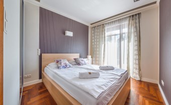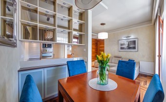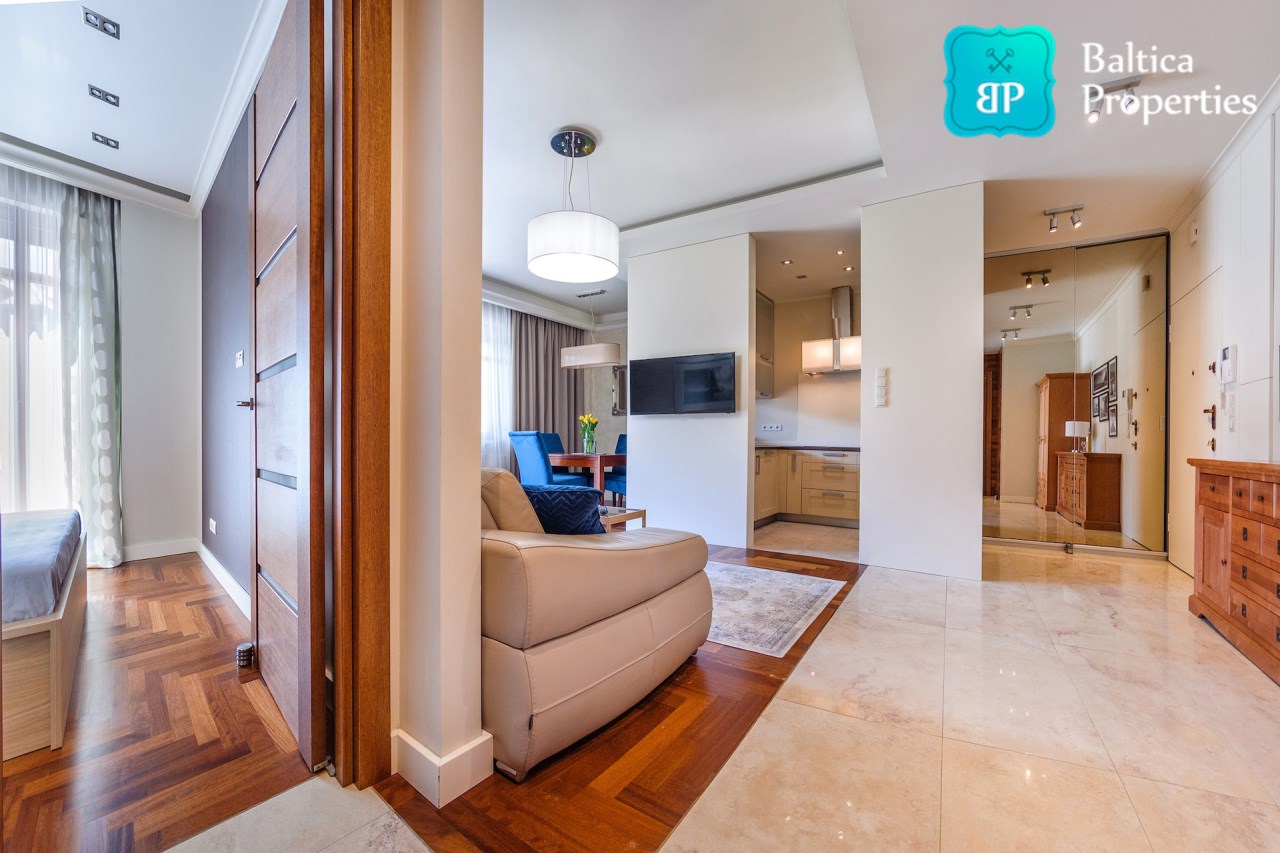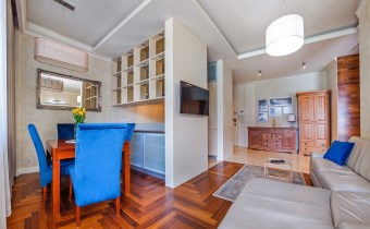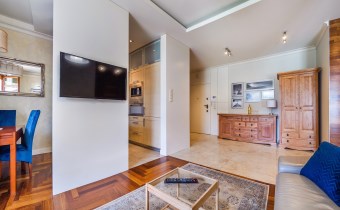 Apartament w pełni umeblowany o wysokim standardzie widocznym na zdjęciach.