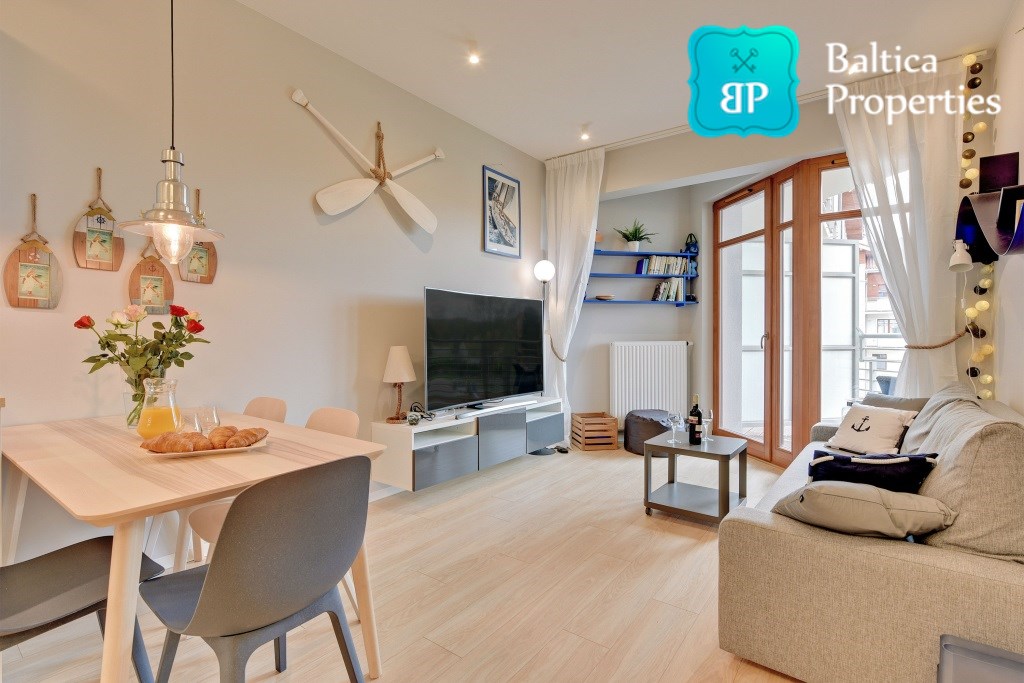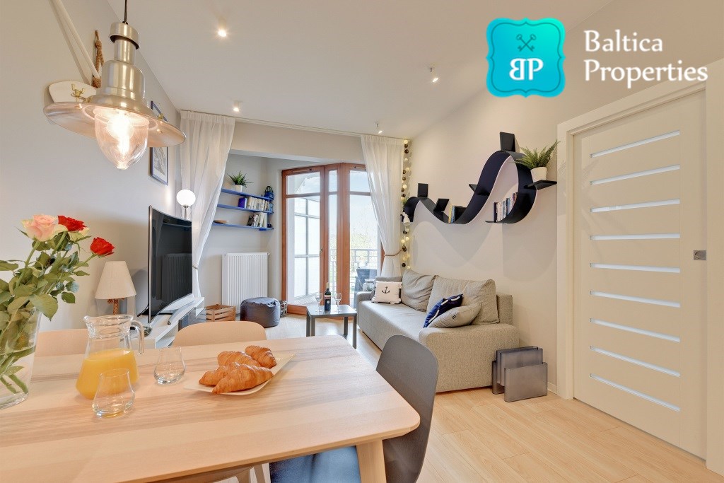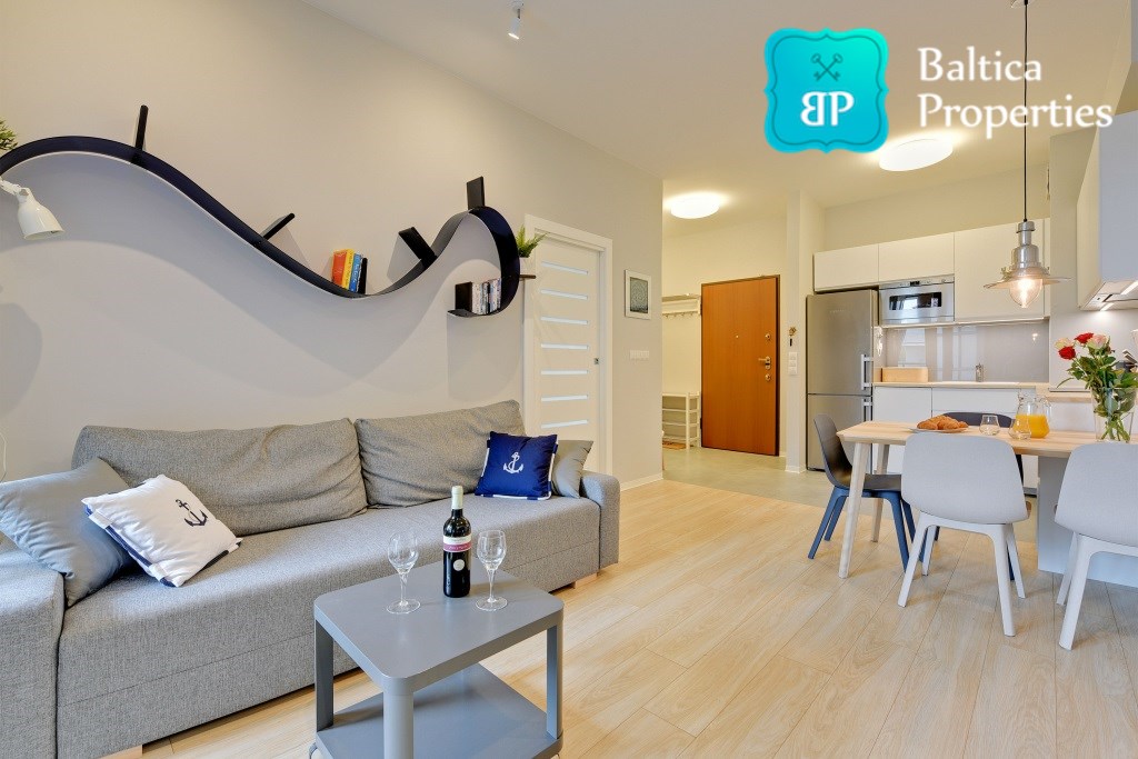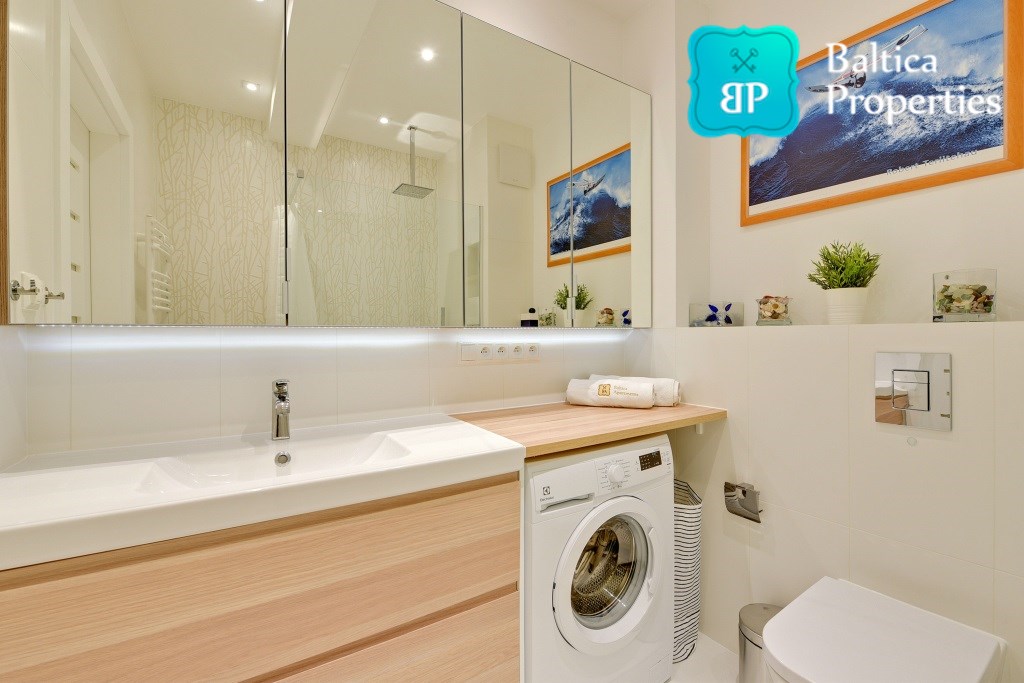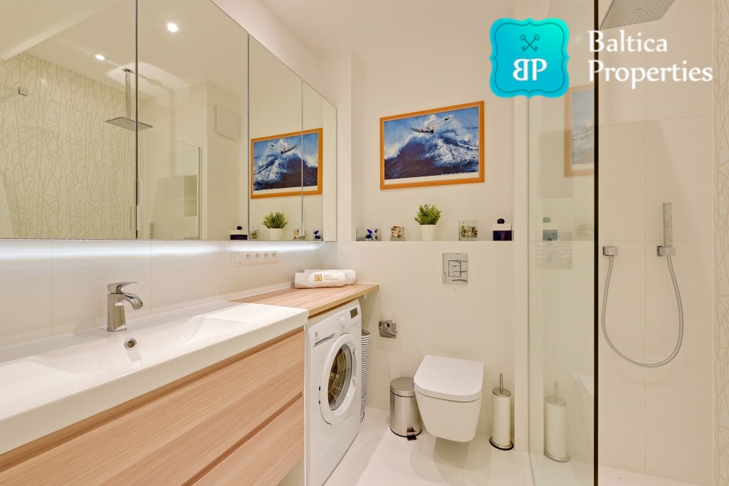Na wynajem luksusowy apartament "BOSMAN" o pow 50m2 zlokalizowany w luksusowym kompleksie Neptun Park w odległości 100m od plaży w Jelitkowie tuż przy promenadzie.Apartament składa się z następujących pomieszczeń: