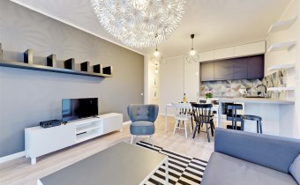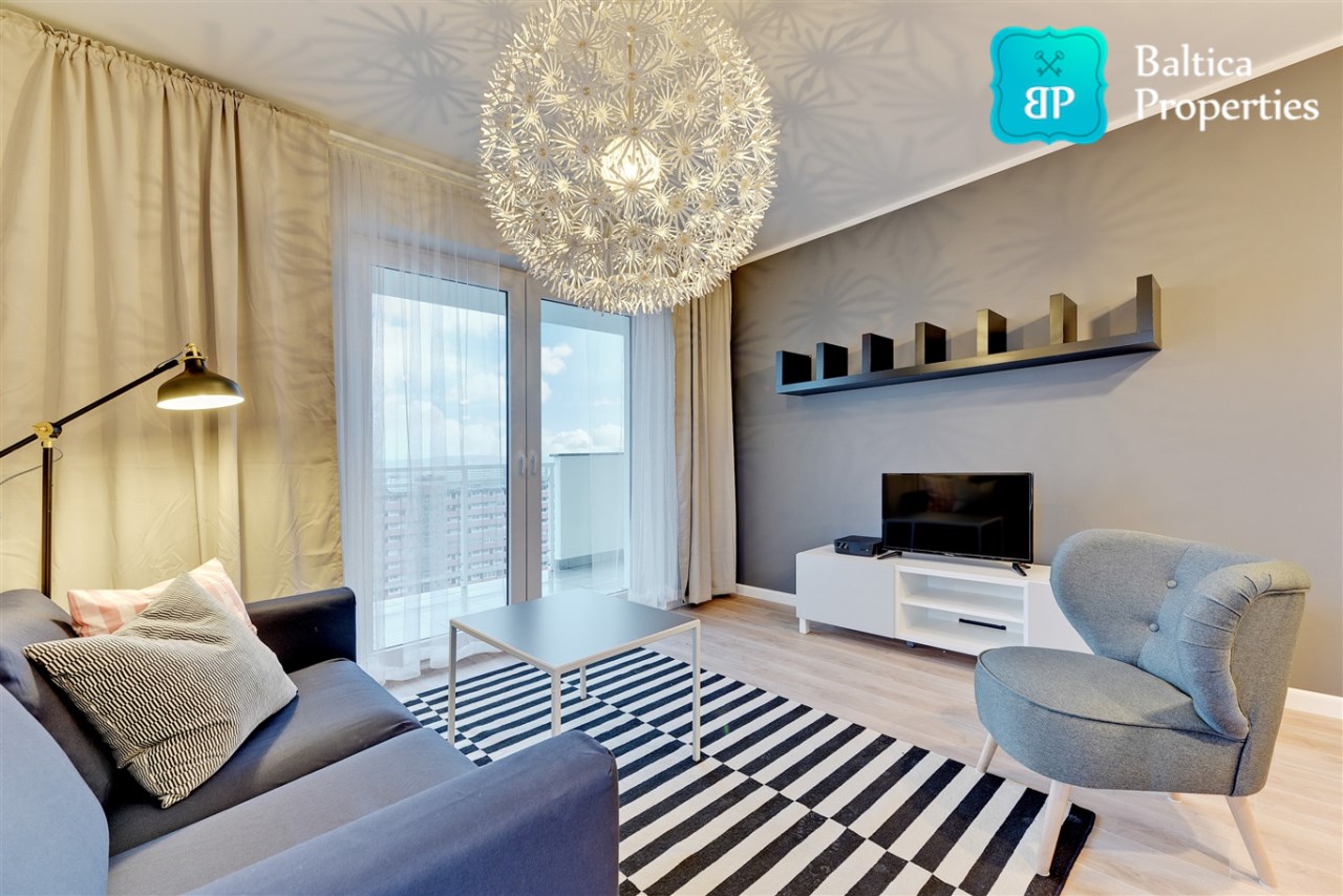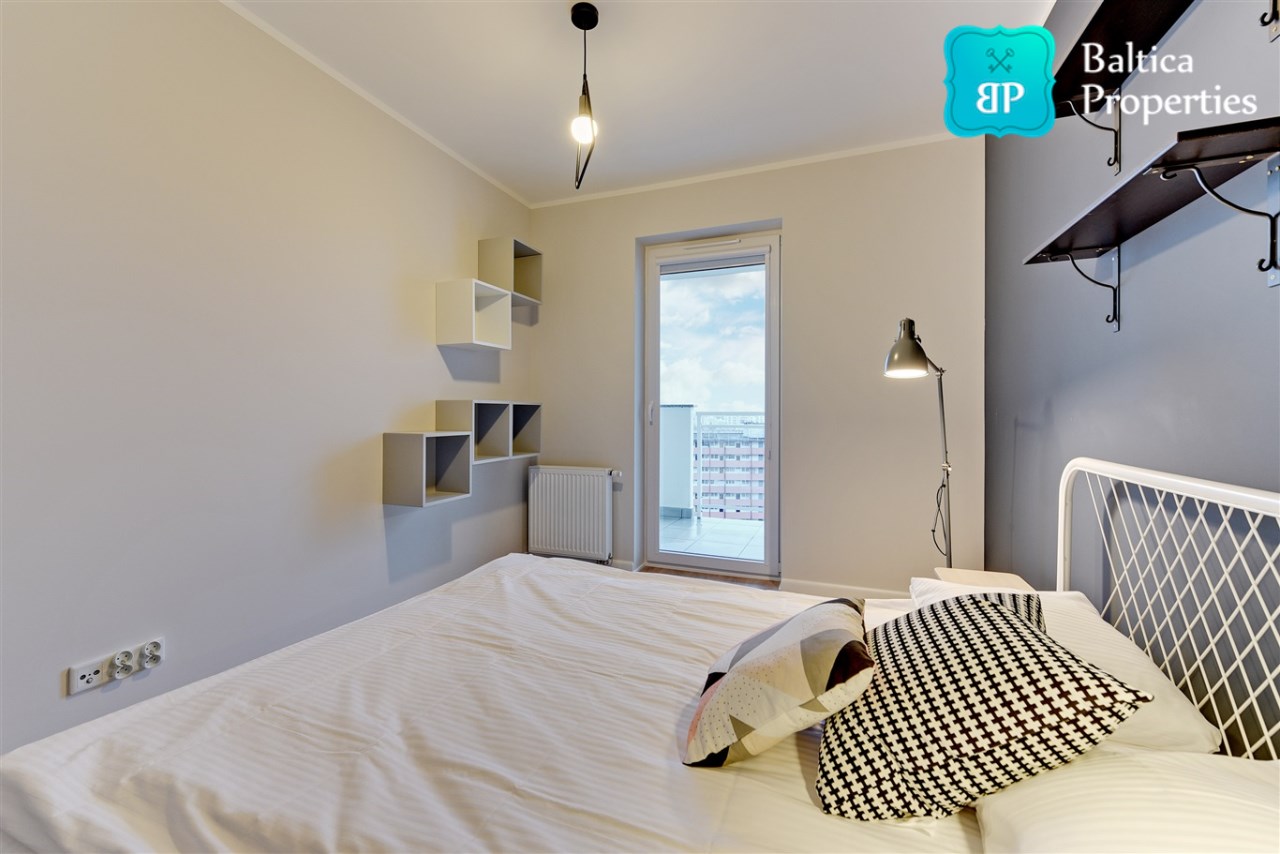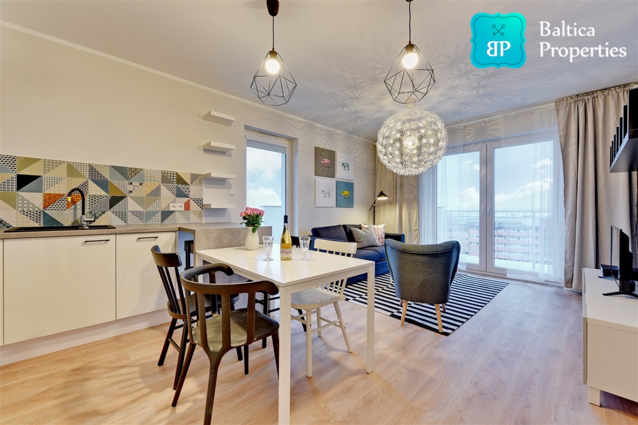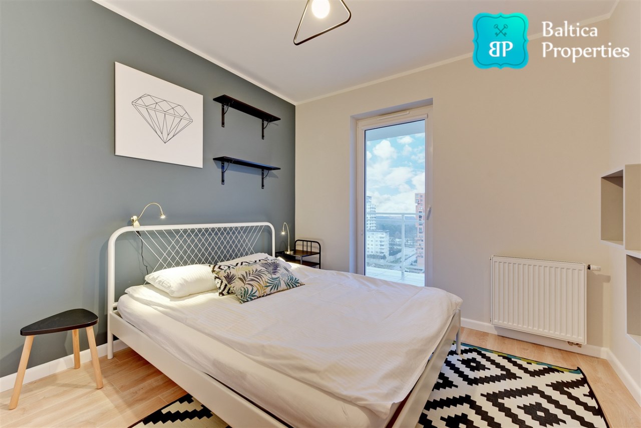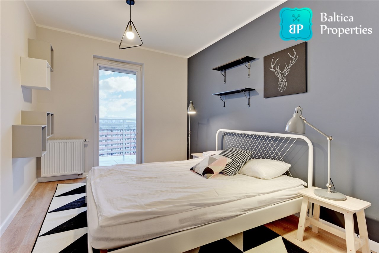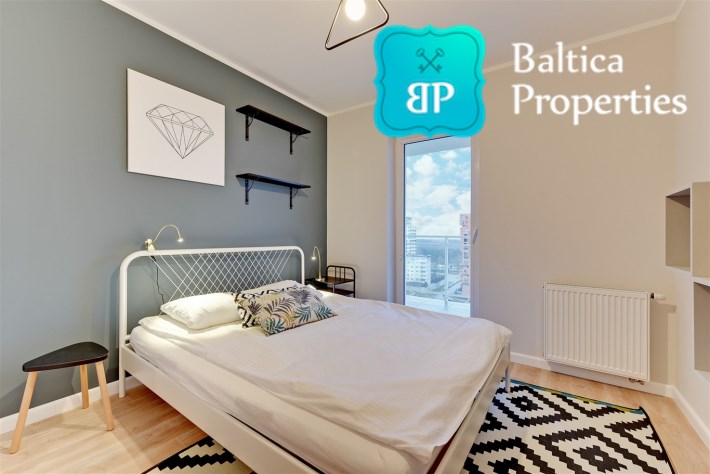 Na wynajem od Zaraz piękny oraz komfortowy apartament "4 OCEANY SEA VIEW" zlokalizowany w apartamentowcu 4 OCEANY w Gdańsku, dzielnica Przymorze przy ulicy Obrońców Wybrzeża 17.Apartament trzypokojowy o pow. 65m2 znajduje się na XII piętrze apartamentowca, posiada rozkład składający się z :
