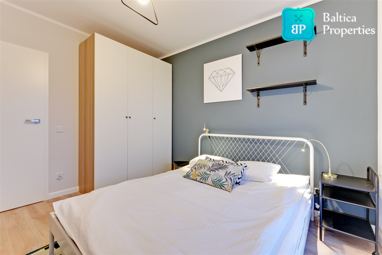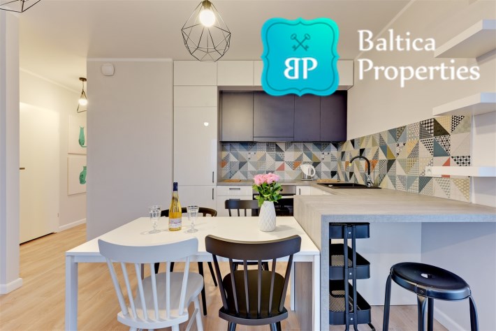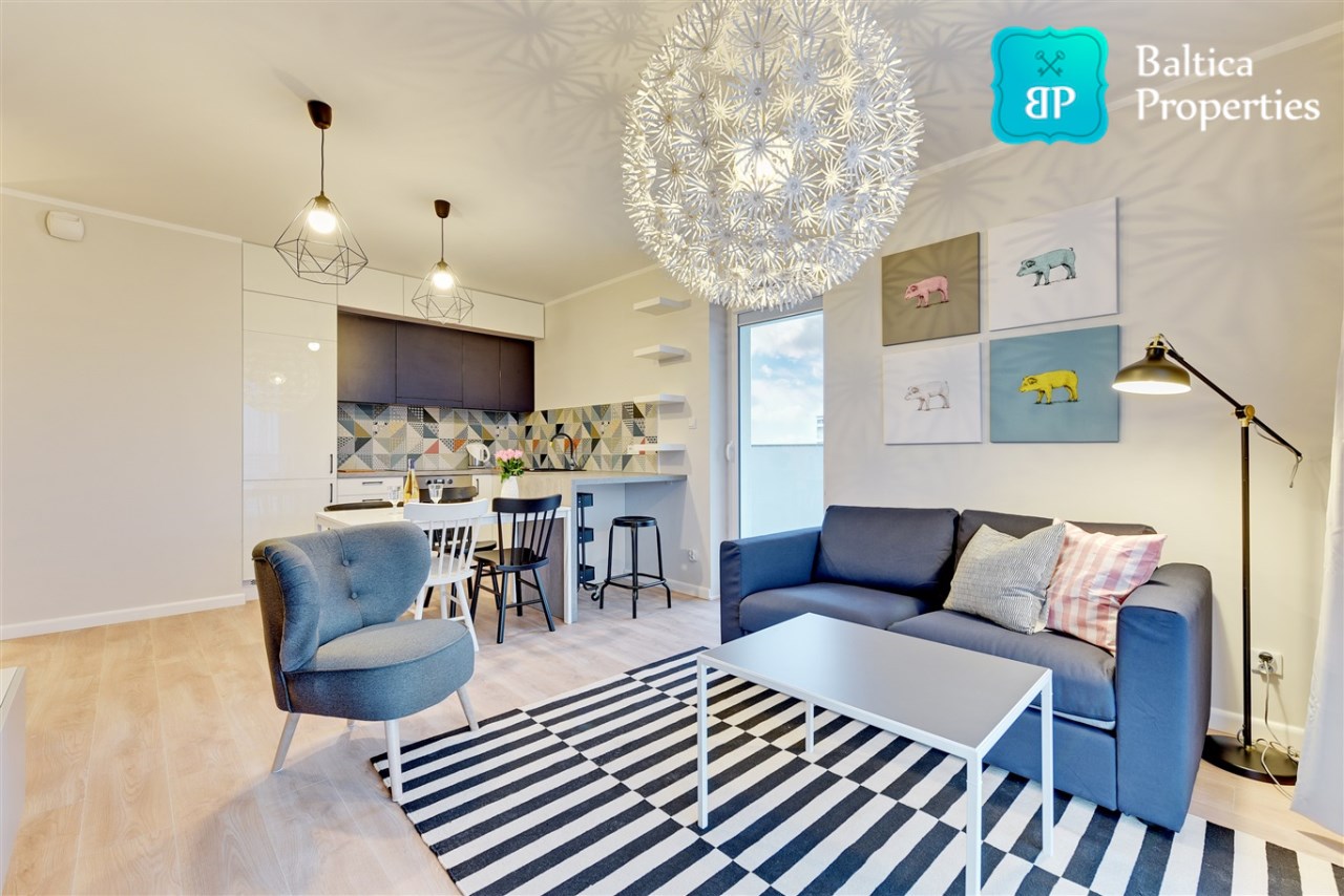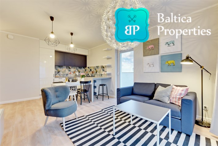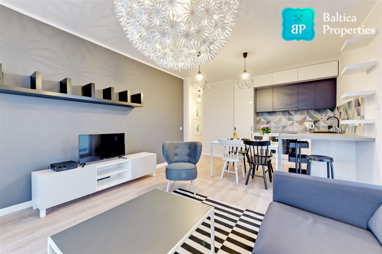 Apartament w pełni umeblowany o wysokim standardzie widocznym na zdjęciach.