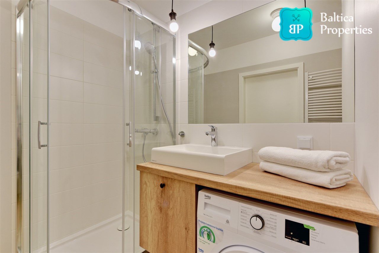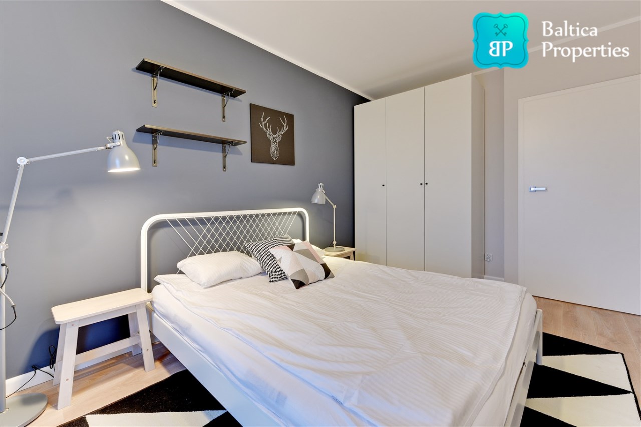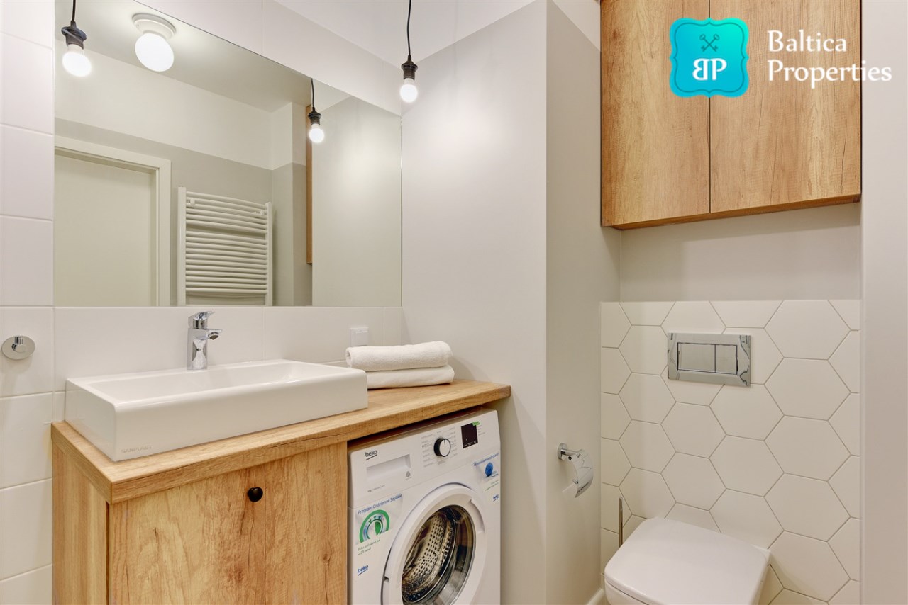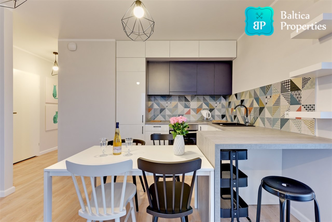 Apartament w pełni umeblowany o wysokim standardzie widocznym na zdjęciach.