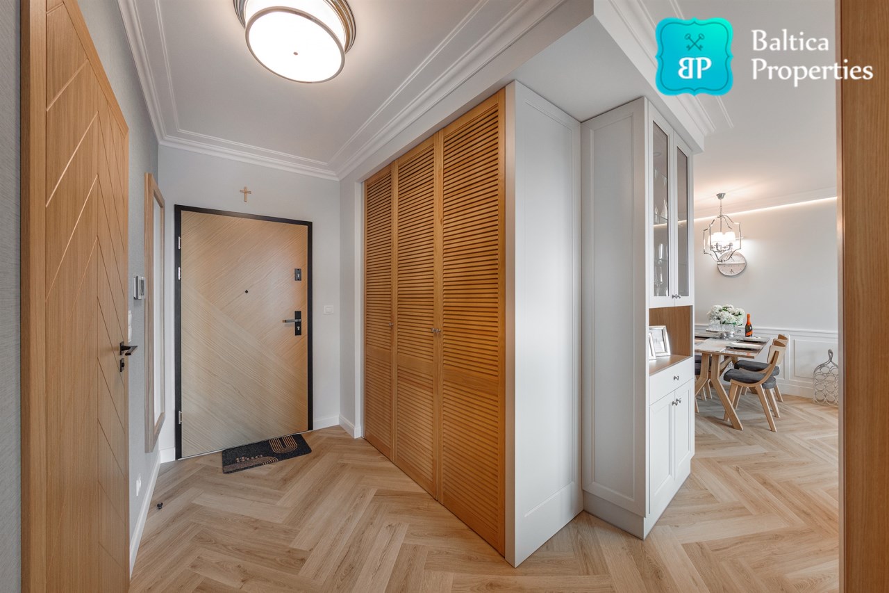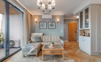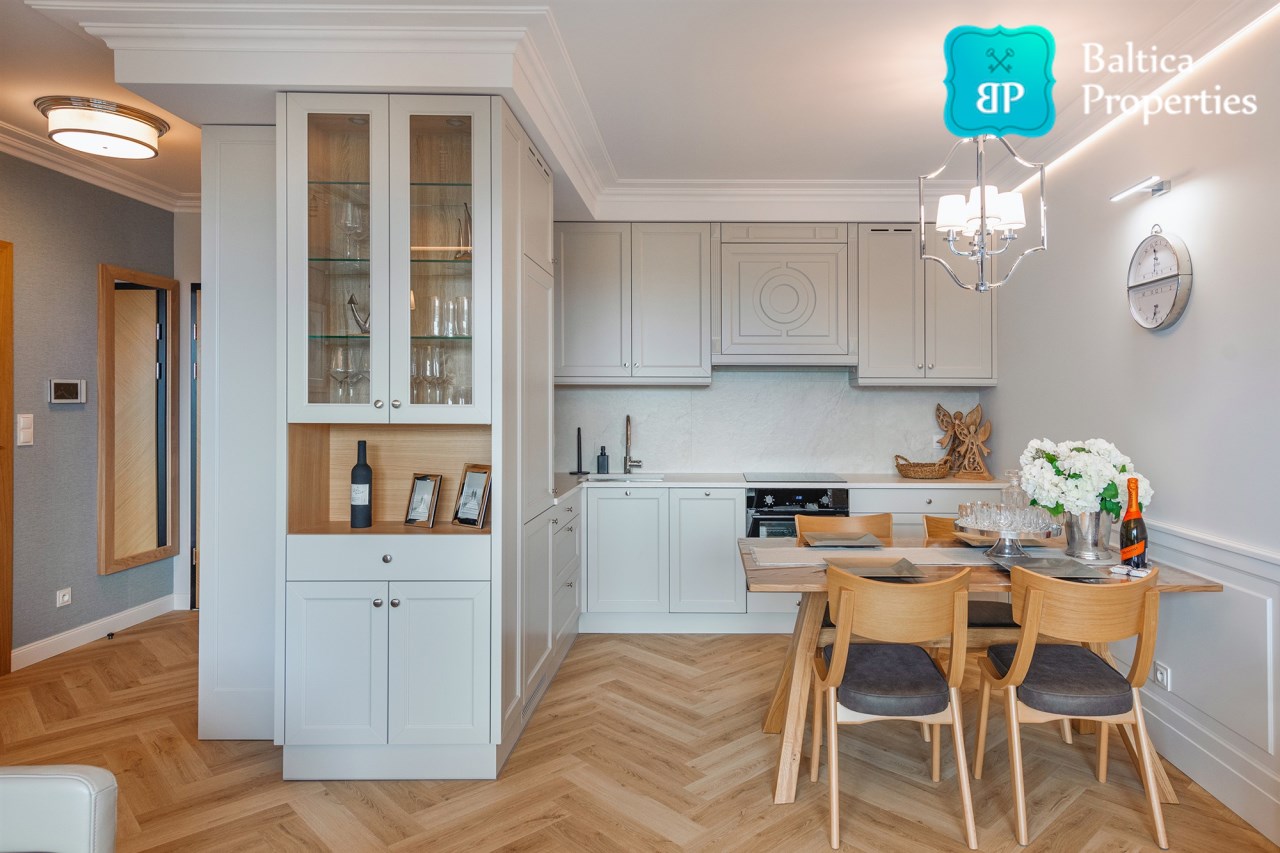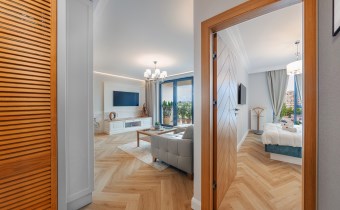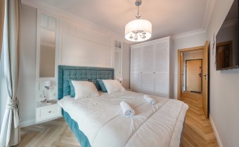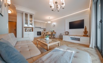 Apartament jest przestronny, o znakomitym rozkładzie pomieszczeń, o pow. ok 45m2, o bardzo wysokim standardzie, w pełni wyposażony oraz umeblowany składający się z następujących pomieszczeń: