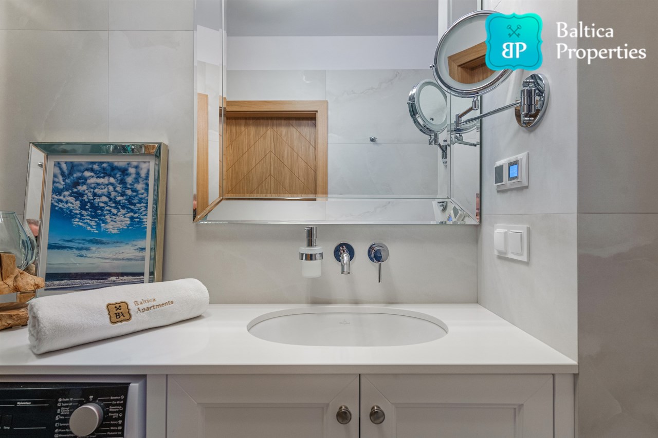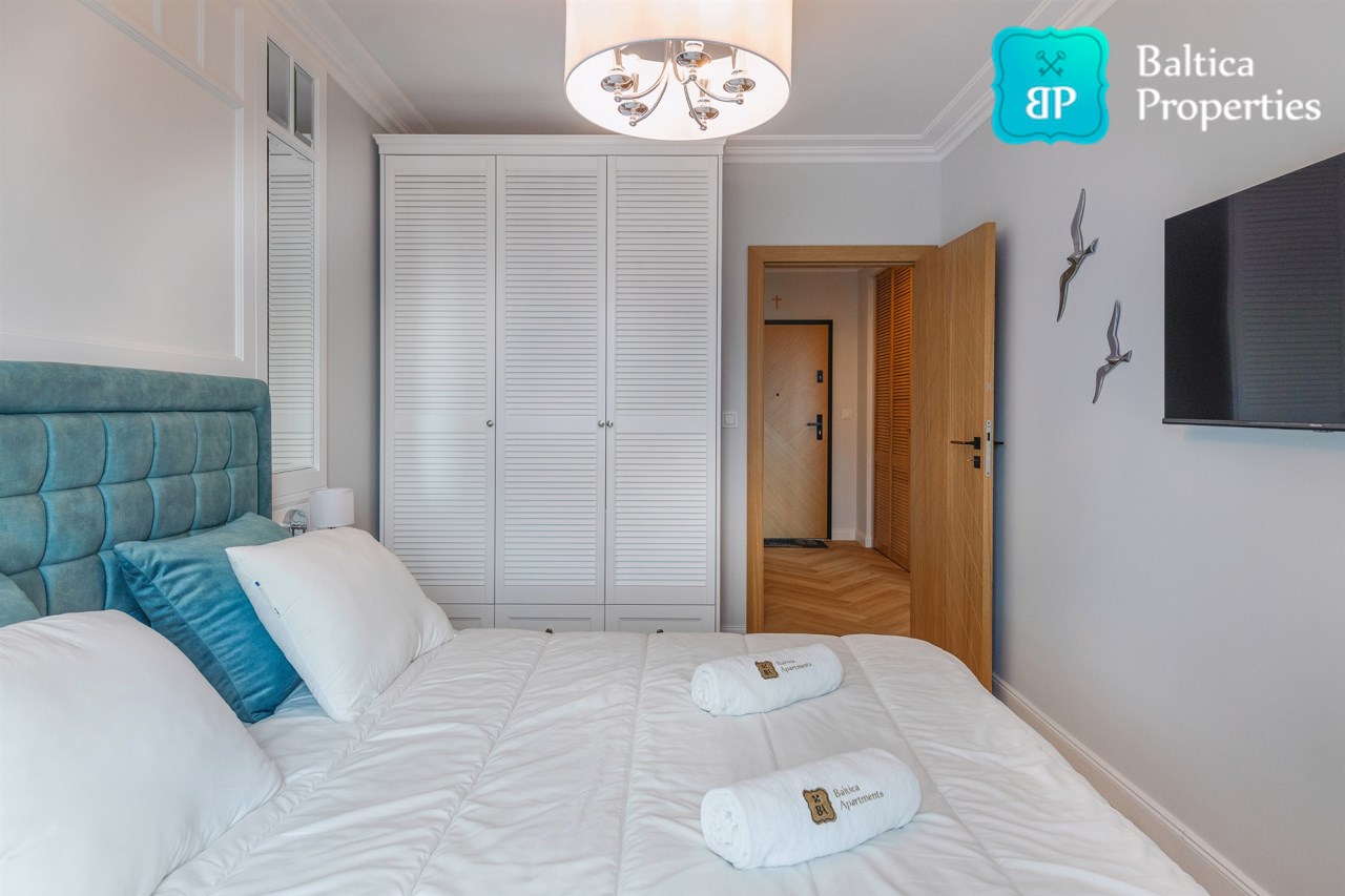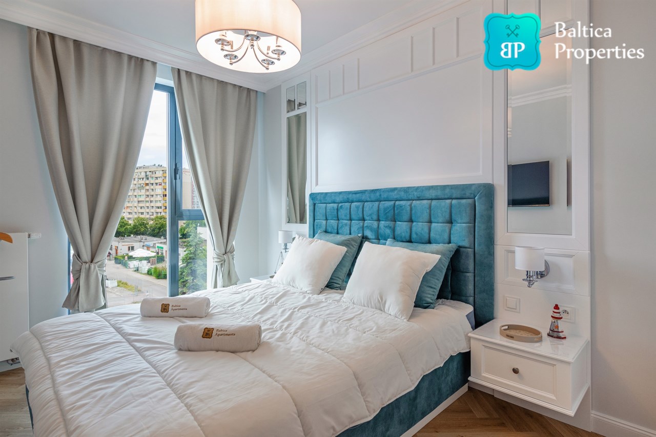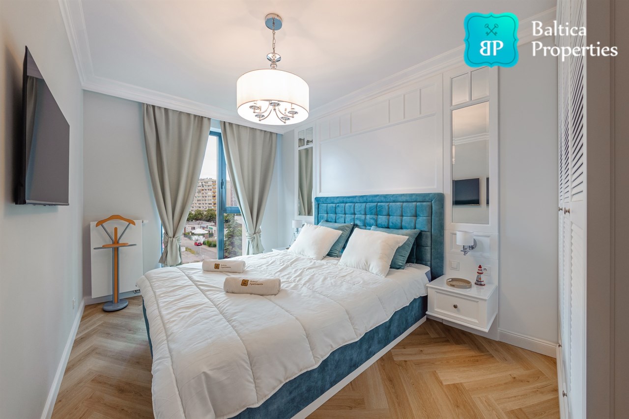 Na wynajem luksusowy apartament " BLUE" zlokalizowany w apartamentowcu " Tarasy Bałtyku " w znakomitej lokalizacji : Gdańsk Przymorze w odległości 800 m od plaży i promenady oraz pięknego parku.Spokojna i zdrowa okolica z pełną bogatą infrastrukturą.
