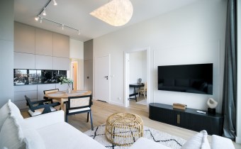 Na wynajem luksusowo wykończony oraz w pełni umeblowany apartament położony w Bydgoszczy przy ulicy Garbary 5 w apartamentowcu oddanym do użytku w 2023 roku.