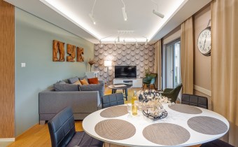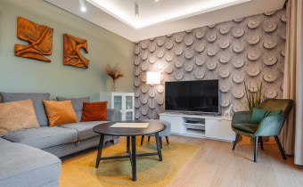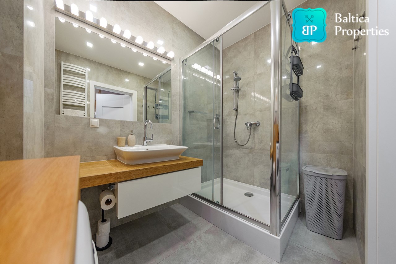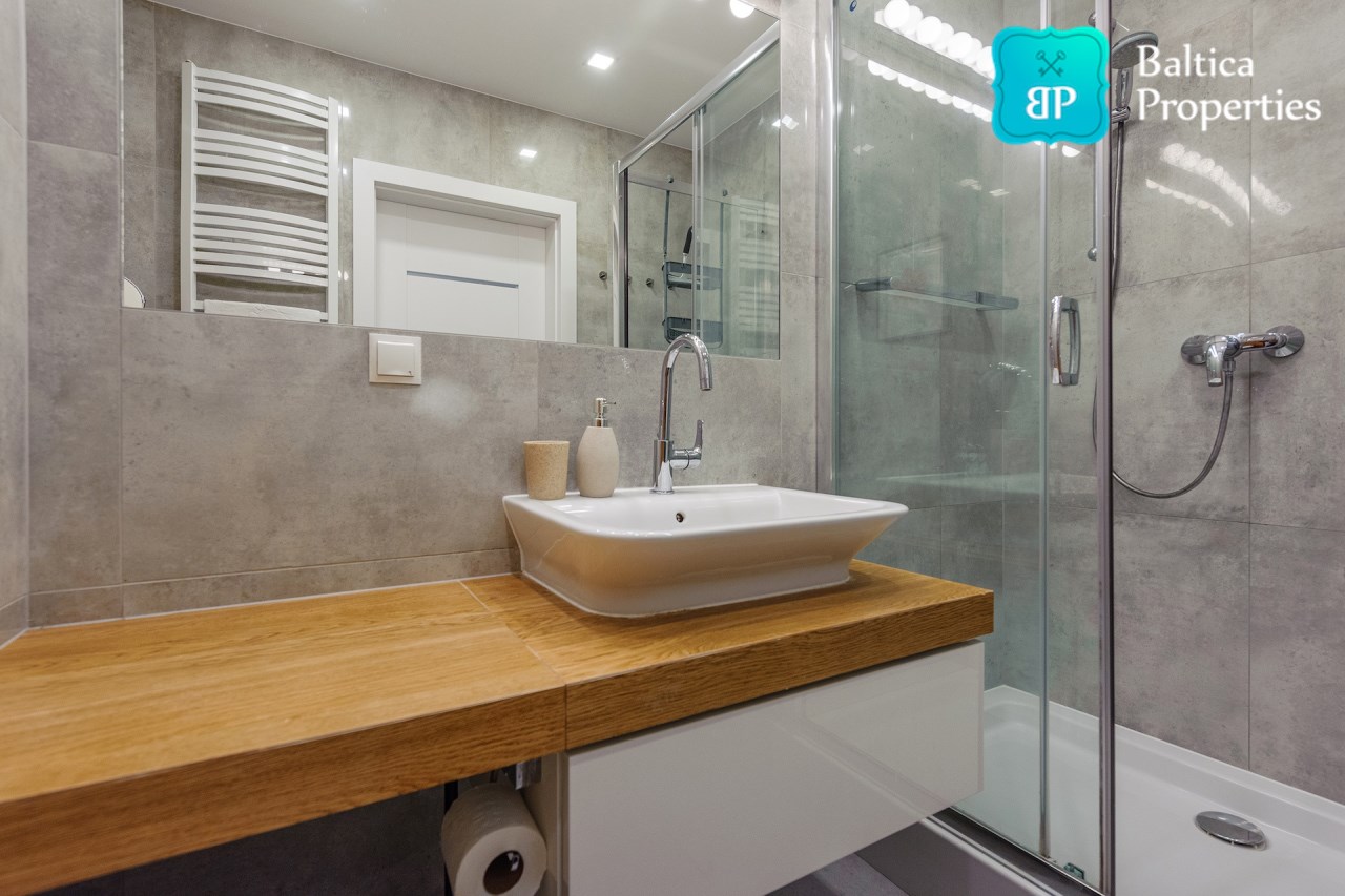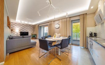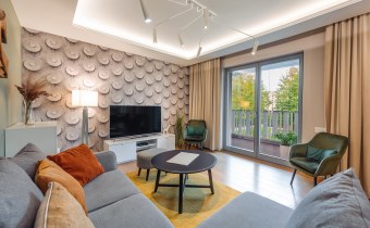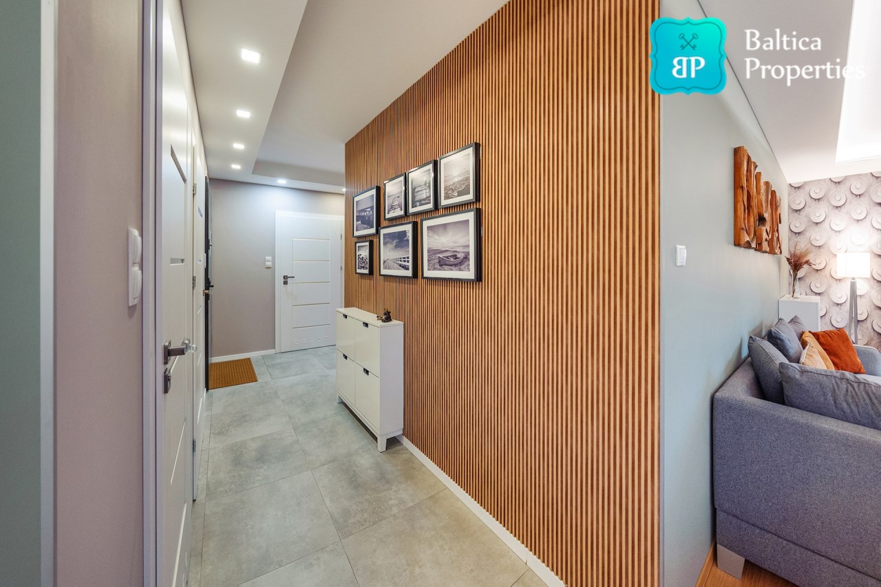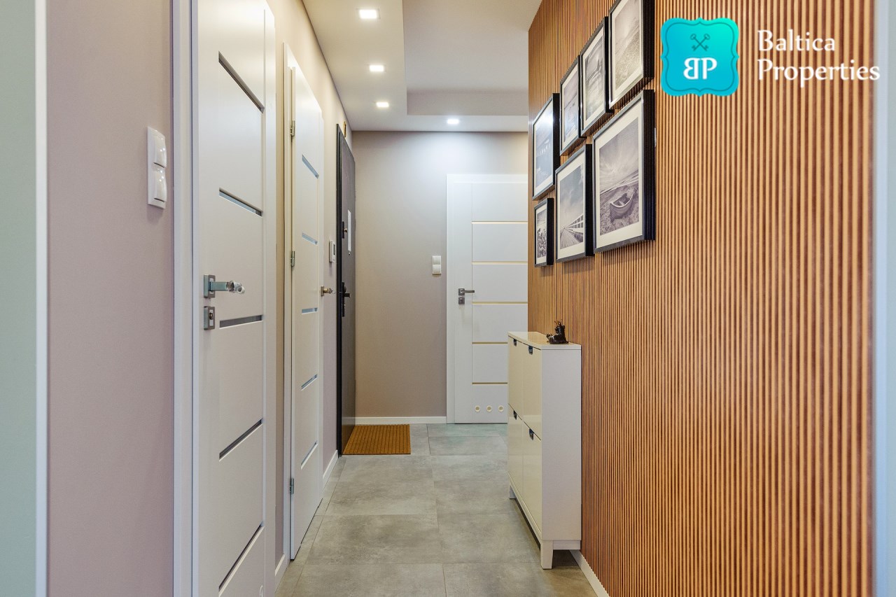 Apartament jest przestronny, o znakomitym rozkładzie pomieszczeń, o pow. 75m2, o bardzo wysokim standardzie, w pełni wyposażony oraz umeblowany składający się z następujących pomieszczeń: