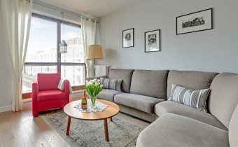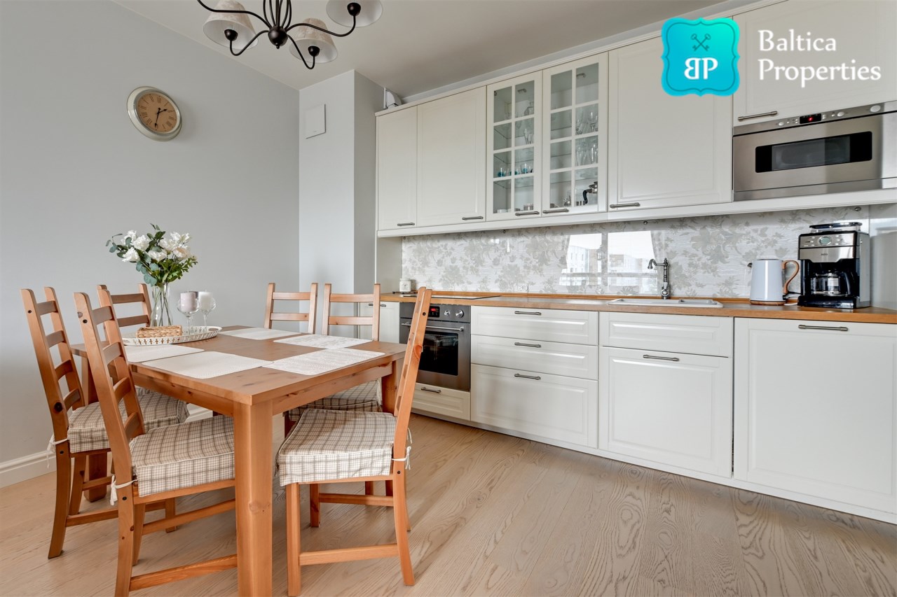 Apartament jest w pełni umeblowany o wysokim standardzie widocznym na zdjęciach.