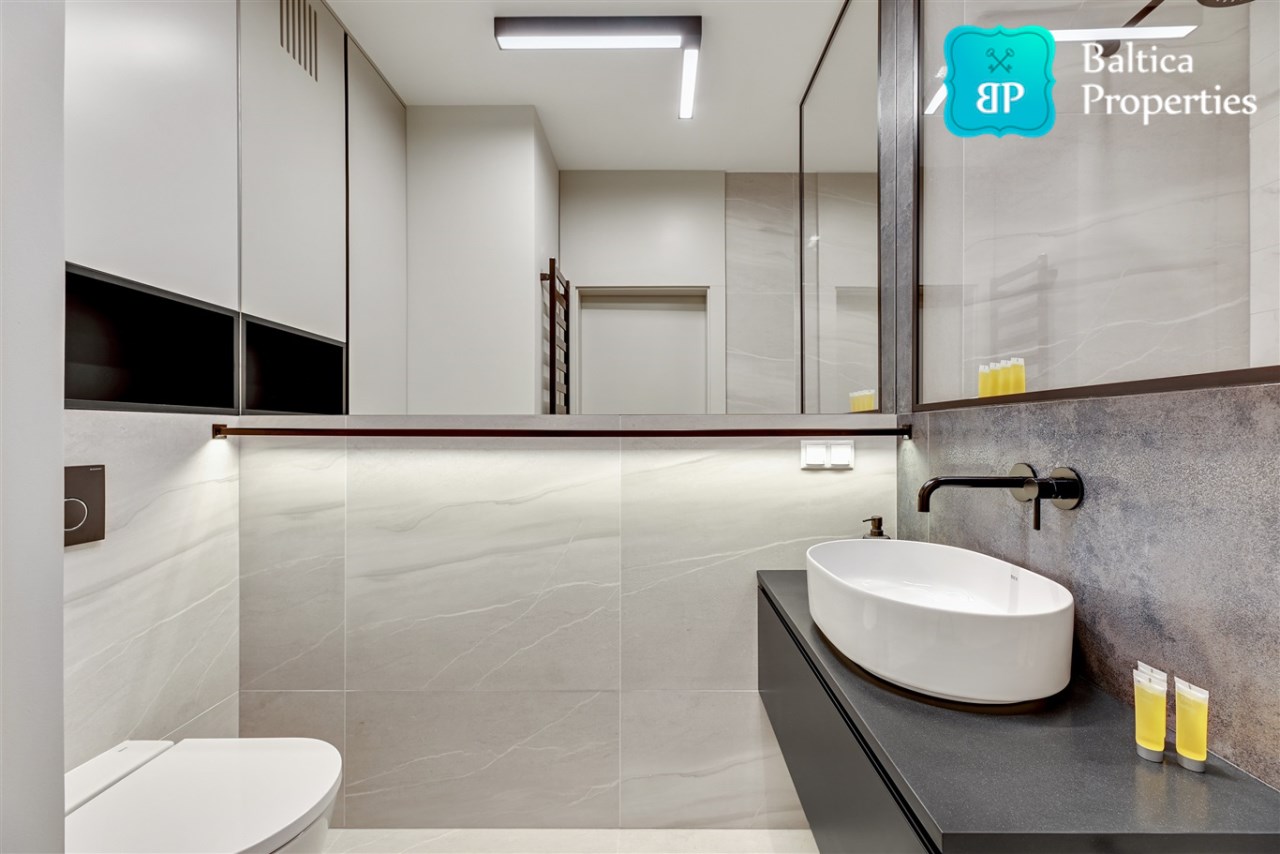 Apartament jest w pełni umeblowany o wysokim standardzie widocznym na zdjęciach.
