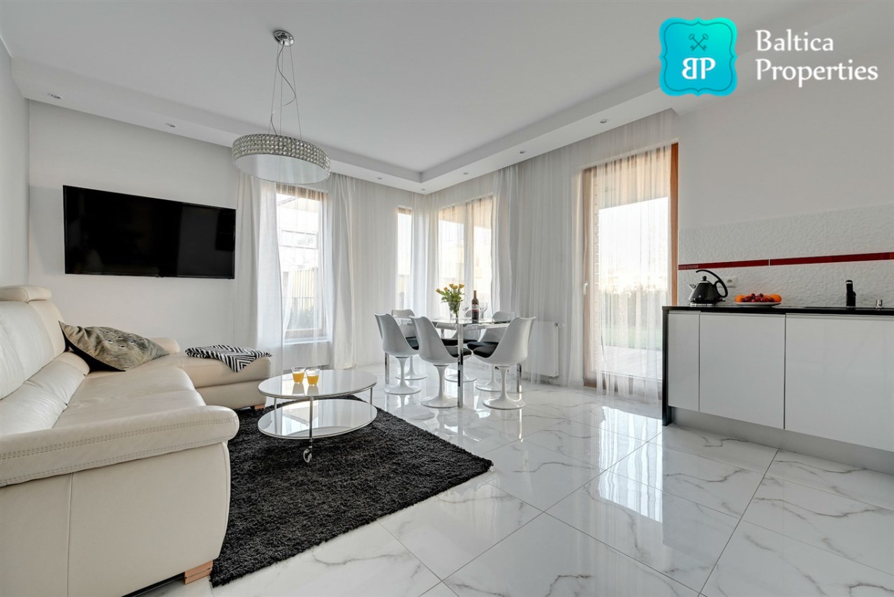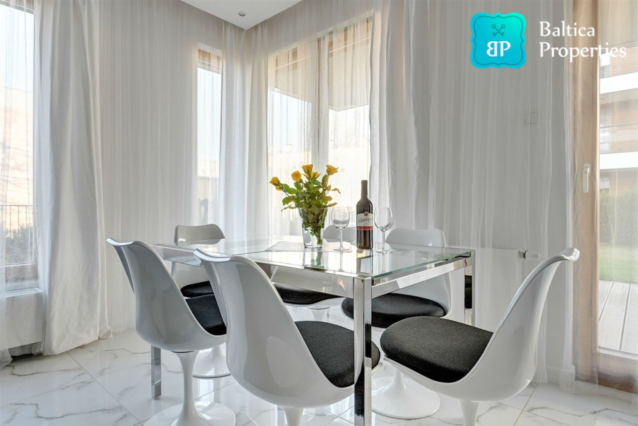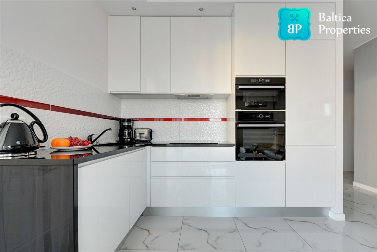 Apartament jest w pełni umeblowany o wysokim standardzie widocznym na zdjęciach.