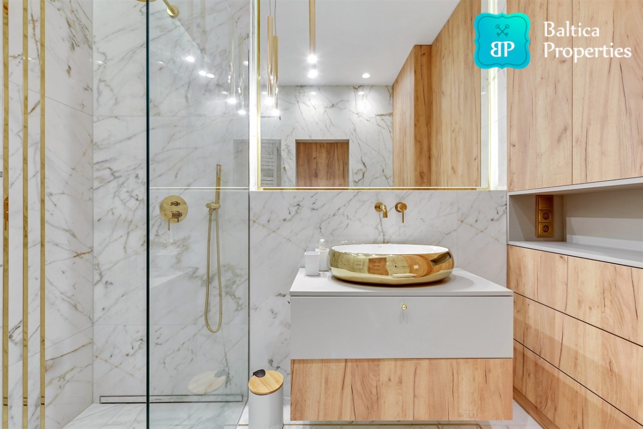 Apartament jest w pełni umeblowany o bardzo wysokim standardzie widocznym na zdjęciach.